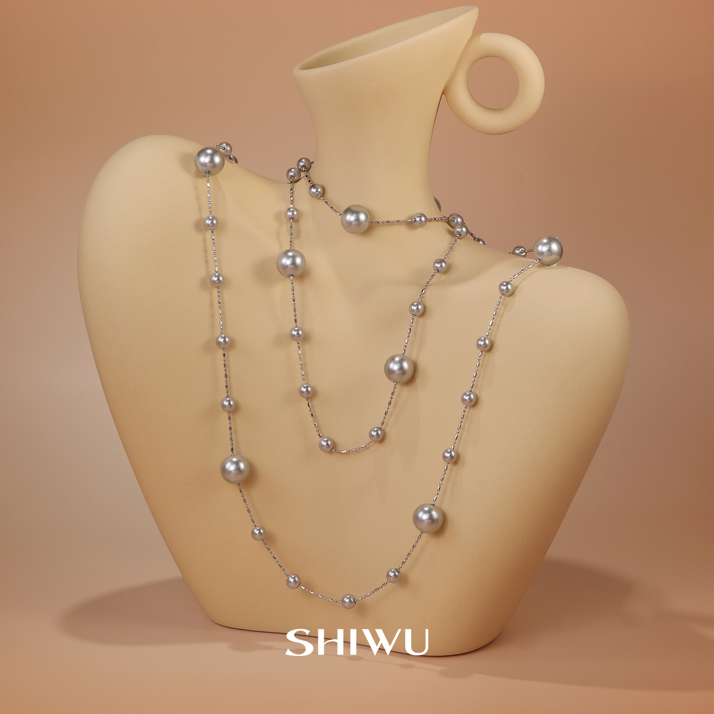 SHIWU满天星珍珠项链长款毛衣链轻奢高级感秋冬叠戴锁骨链女配饰