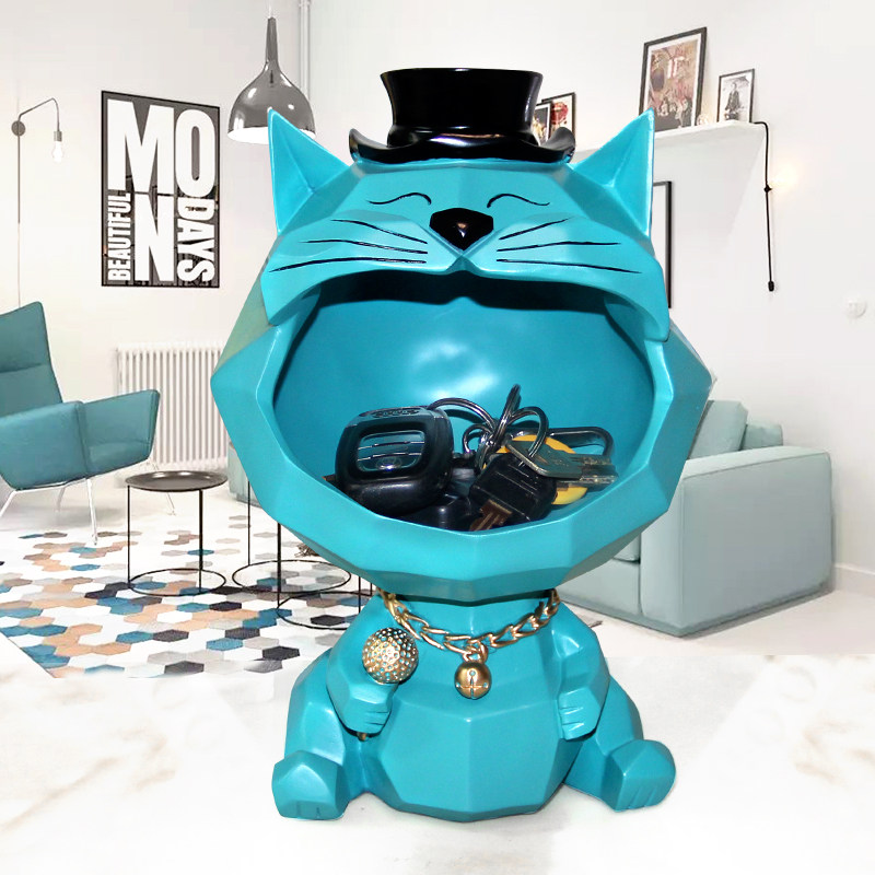 高档创意招财猫钥匙收纳摆件家居客厅桌面收纳盒装饰品乔迁礼品