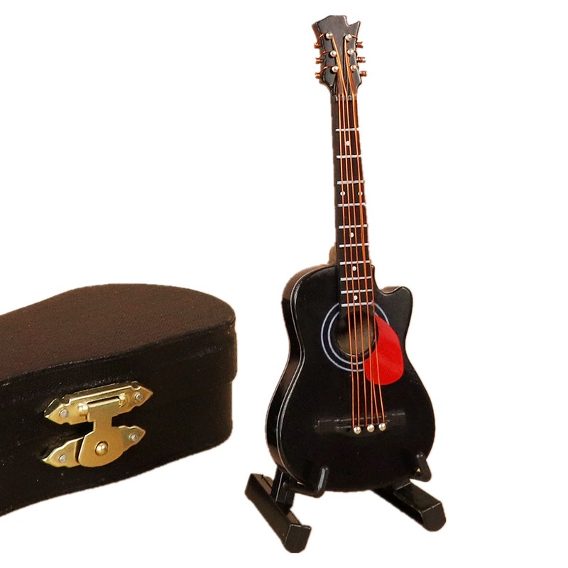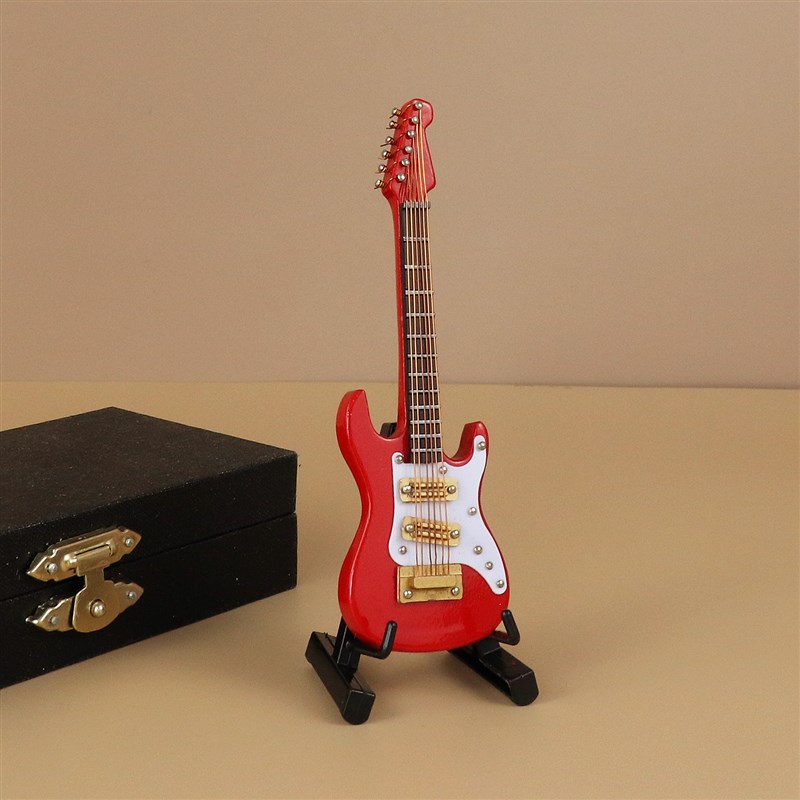 吉他模型电贝斯摆件娃娃迷你乐器10厘米木质古T典民谣电吉他模型