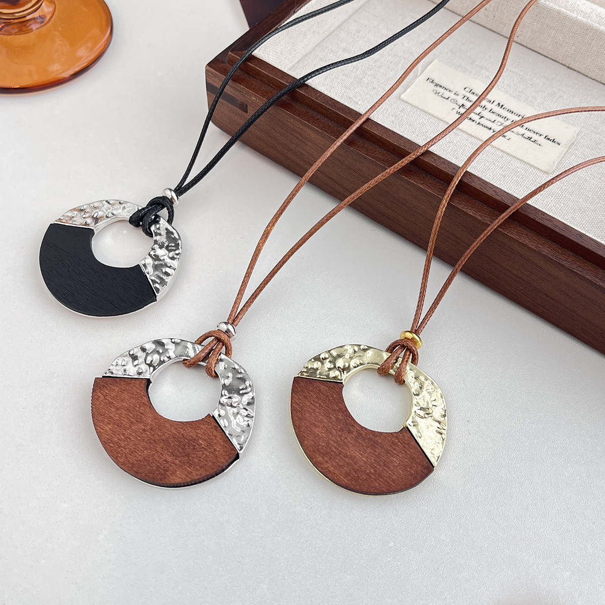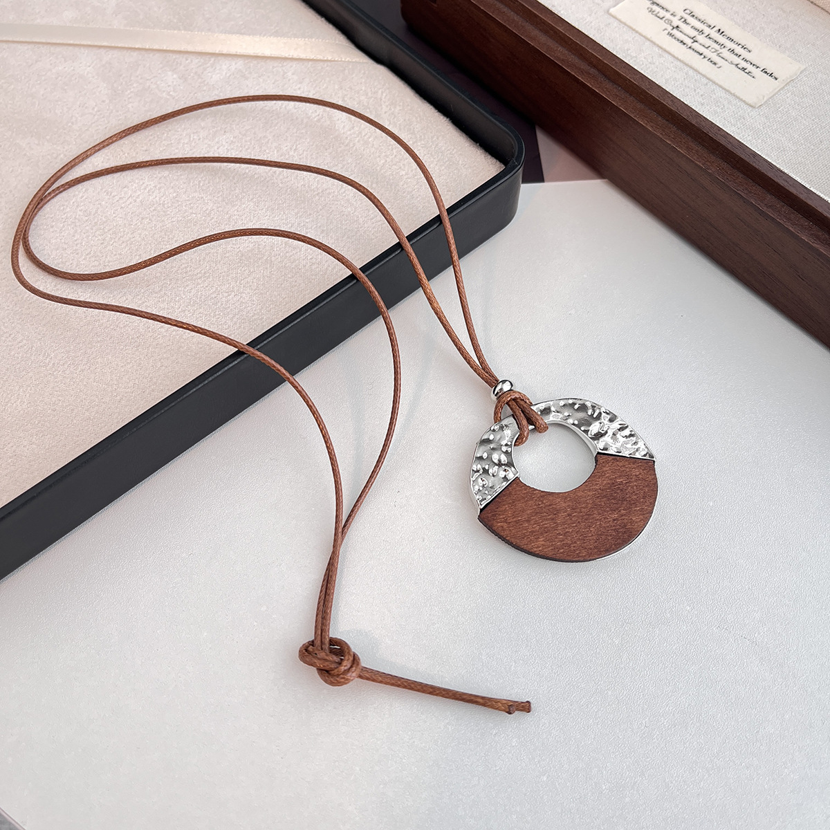 新款极简冷淡风半包圆圈吊坠黑绳长款项链女小众高级感毛衣链配饰