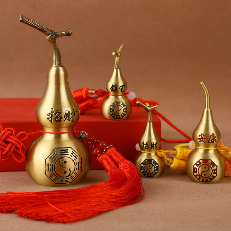 创意中式纯铜开口开盖空心铜葫芦家居饰品汽车挂件挂饰工艺品摆件