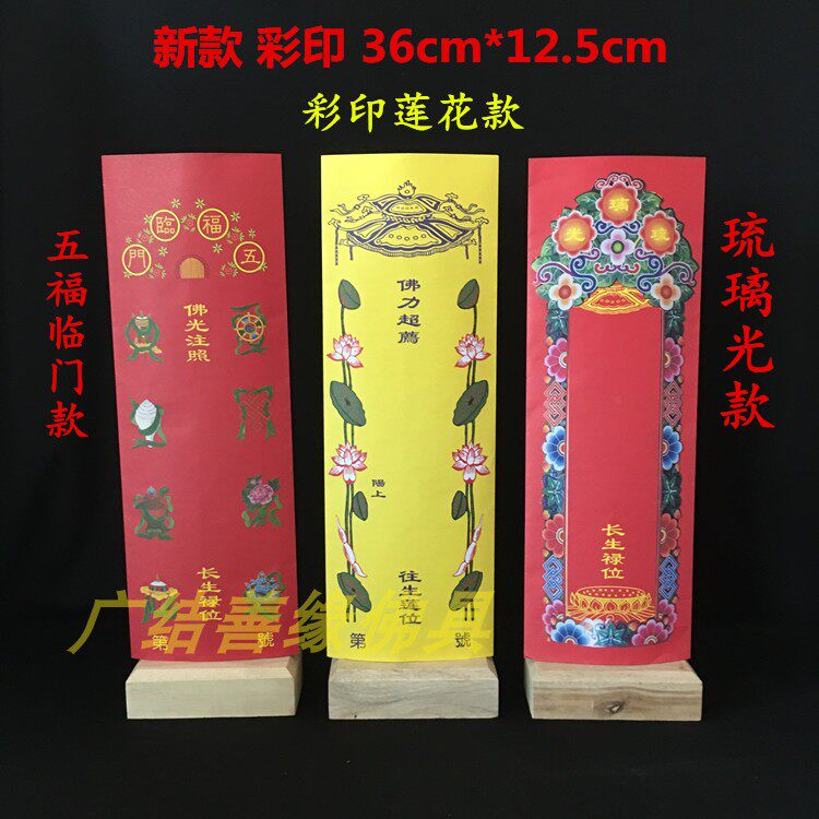包邮新款彩印牌位纸套36*12.5cm无字空白莲位