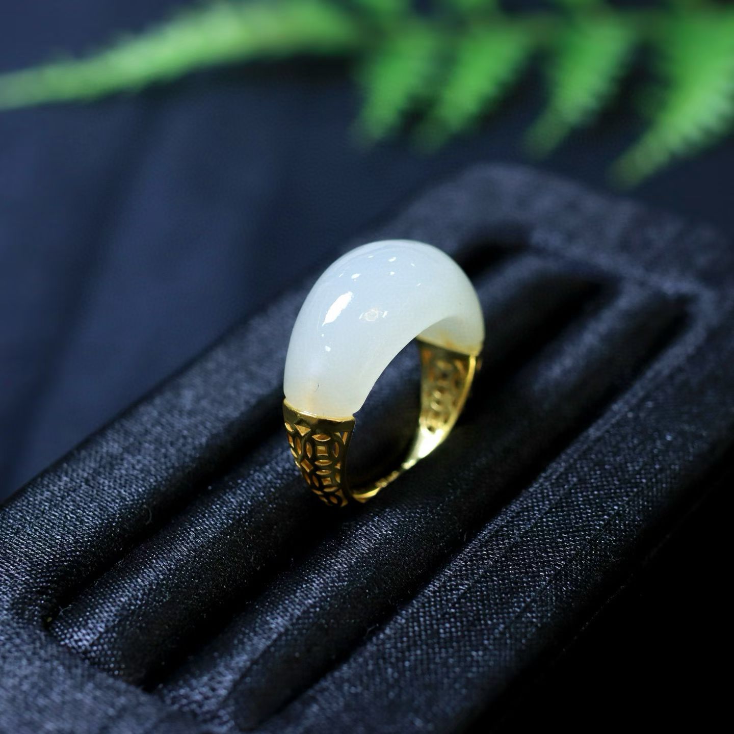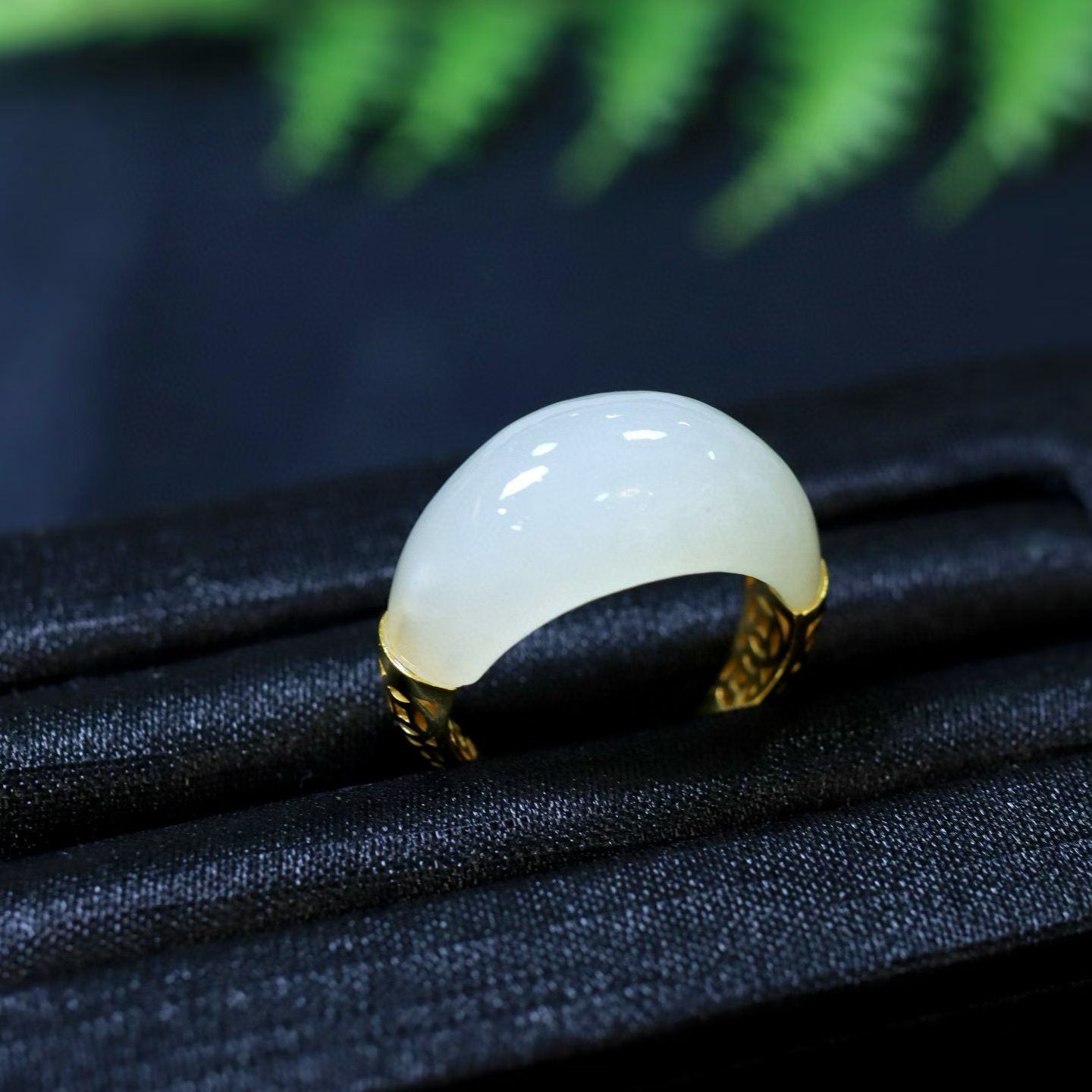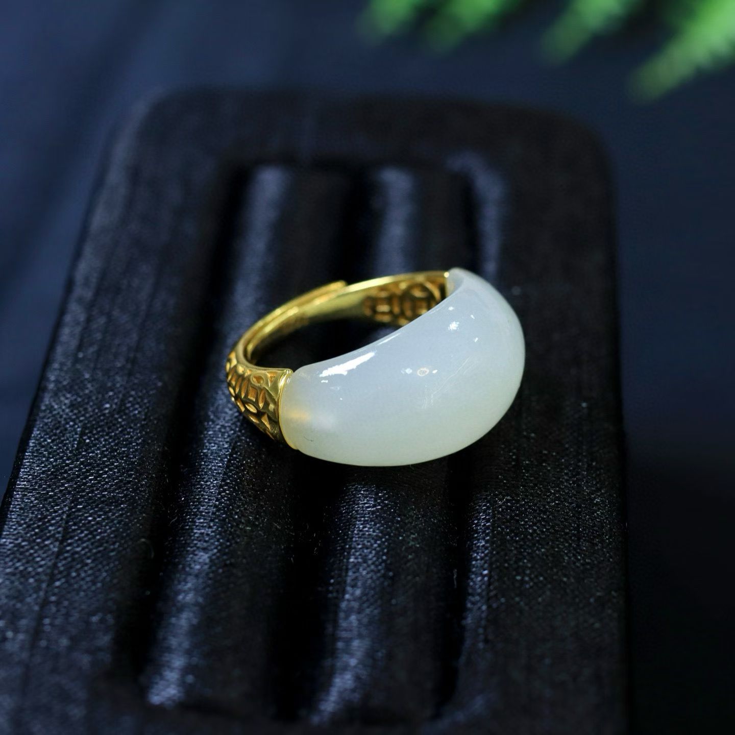 太热和田玉白玉月牙戒指925银镶白玉月牙戒指国风礼物送女友礼物