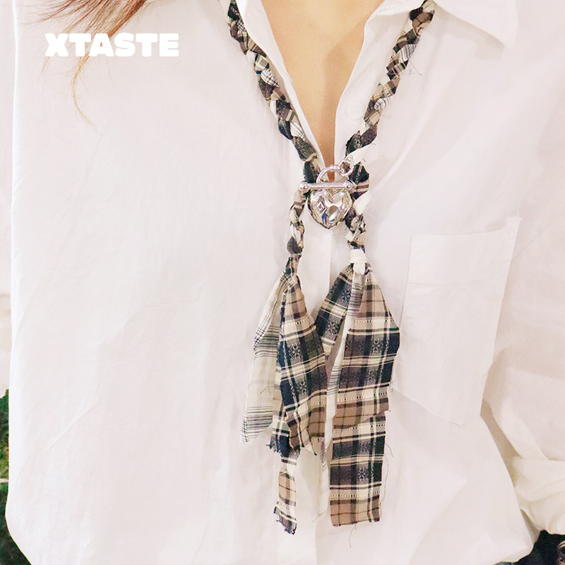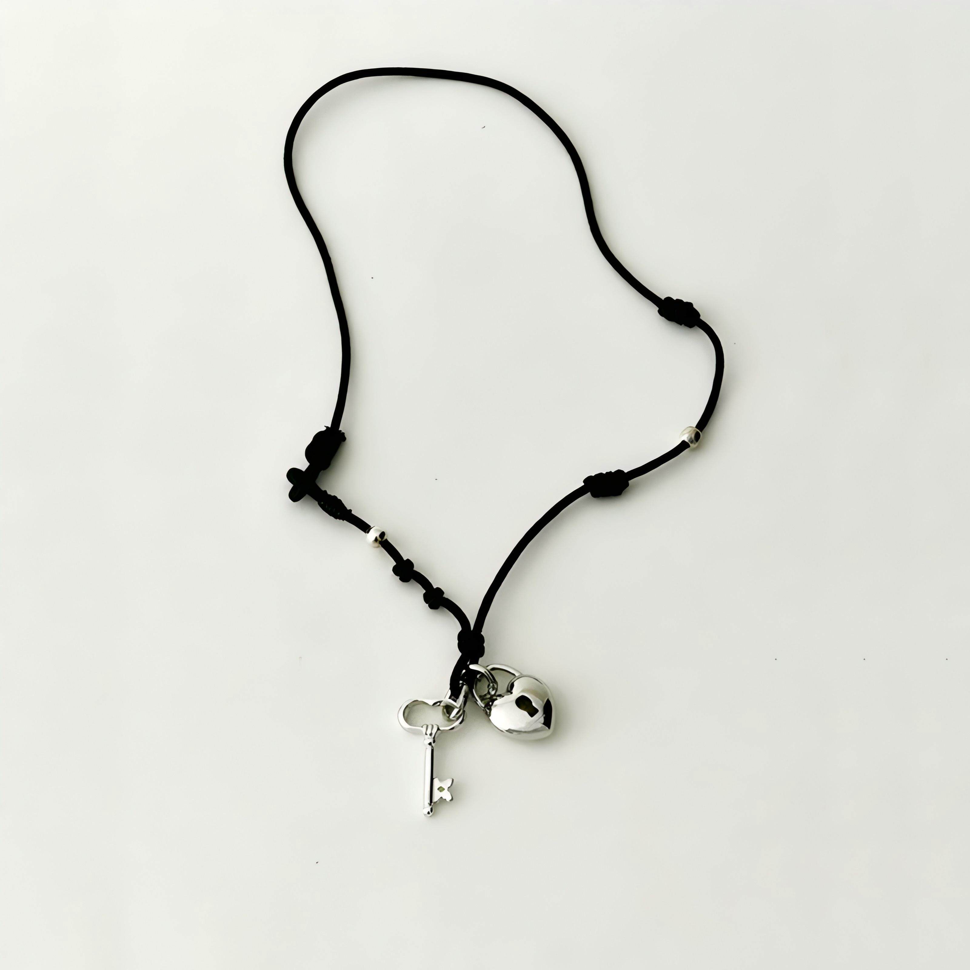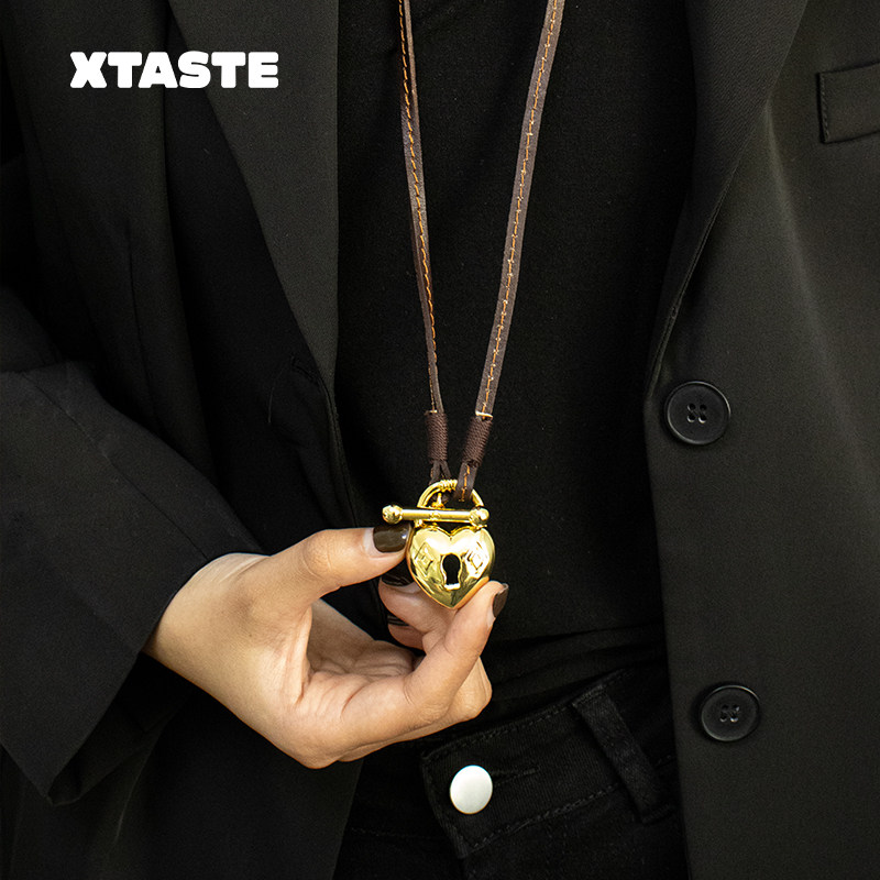 XTASTE Picnique锁心人镀金皮绳长项链圆蜡绳设计 编绳粗钥匙手链