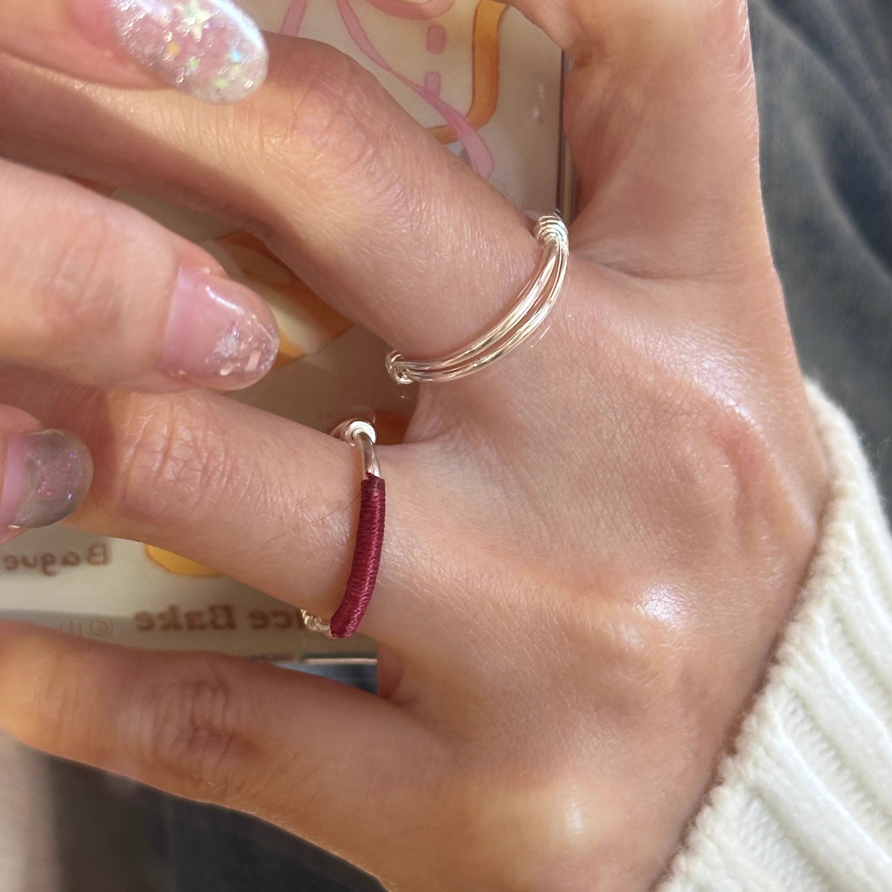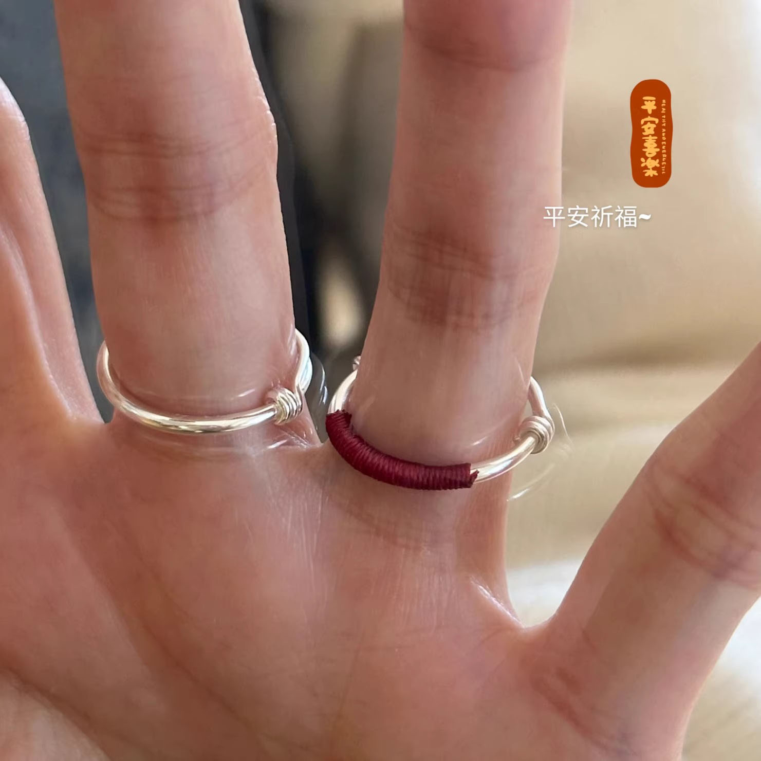 s925纯银缠绕红绳推拉戒指轻奢高级感女新中式简约独特食指戒指环