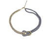 灰色珍珠水钻双层打结项链女新款金属冷淡风锁骨链脖颈链配饰