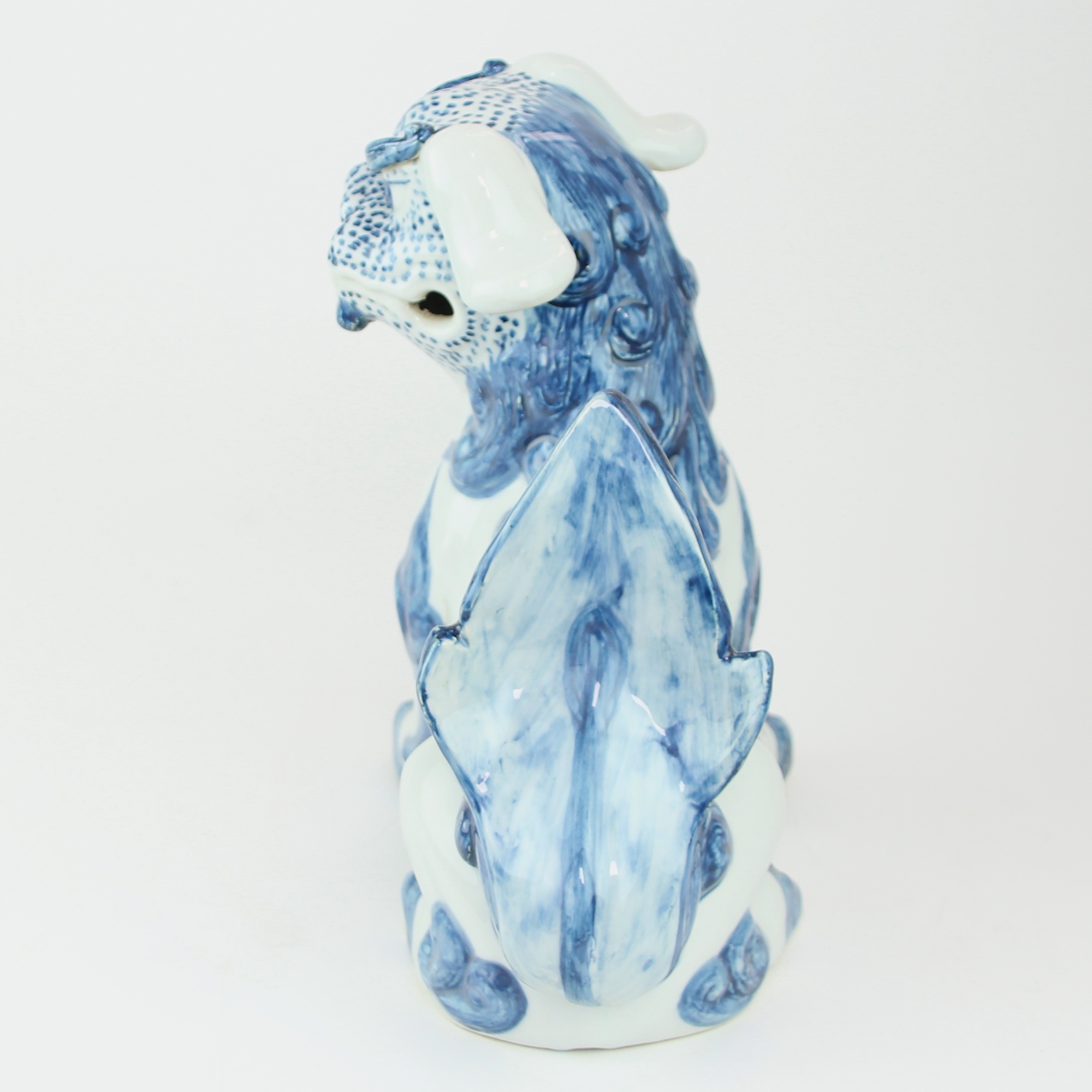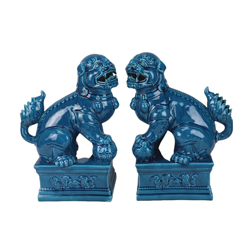 景德镇陶瓷仿古孔雀蓝兰色狮子狗桌面落地中国风国潮动物摆件