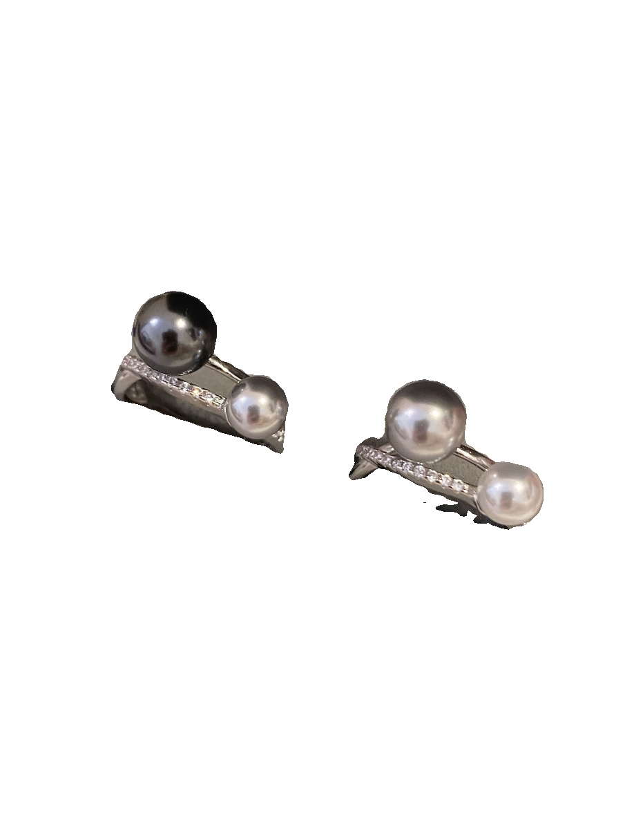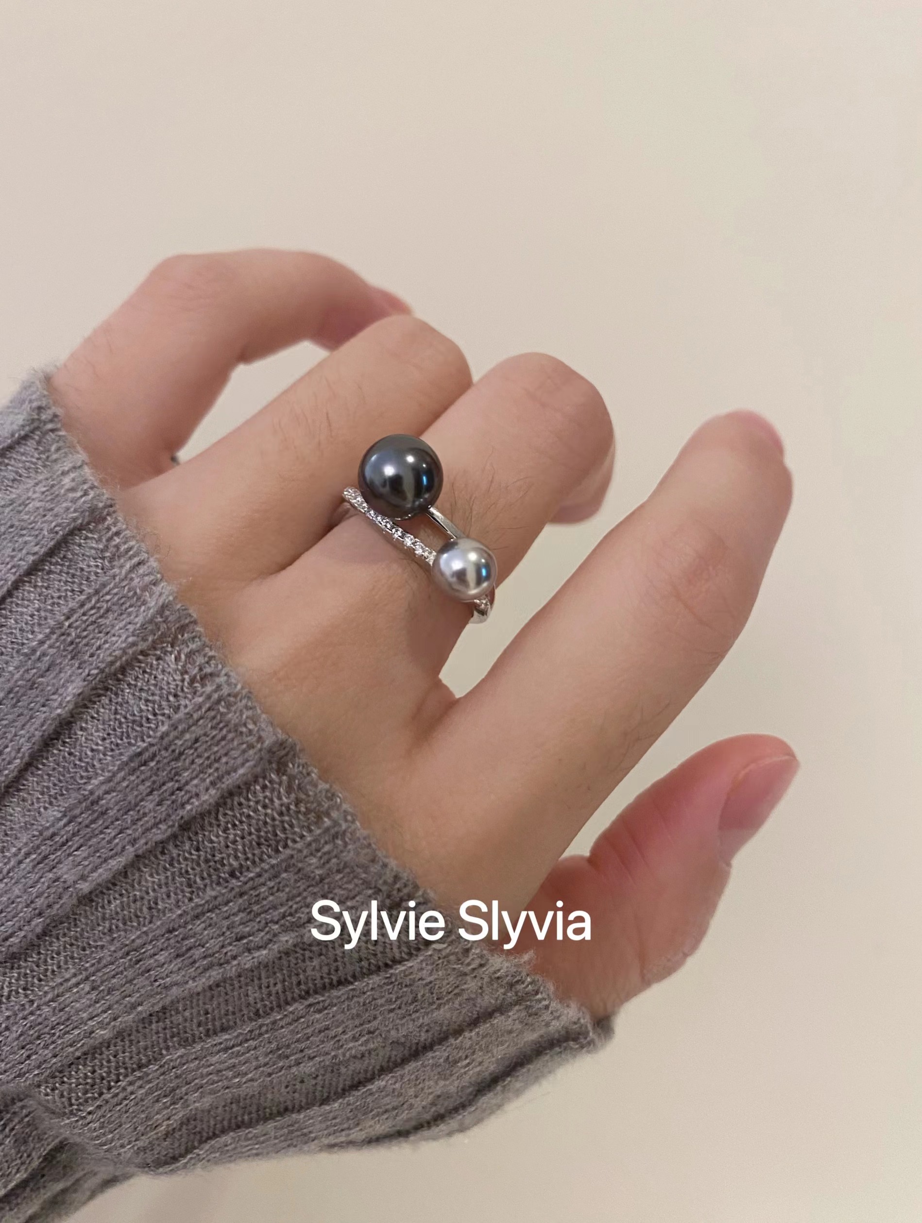 精致气质交叉纯银珍珠戒指大溪地真多麻混色食指戒环开口小众设计