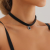 项链欧美跨境饰品短款简约镶钻爱心项链女百搭黑色韩国绒布颈链