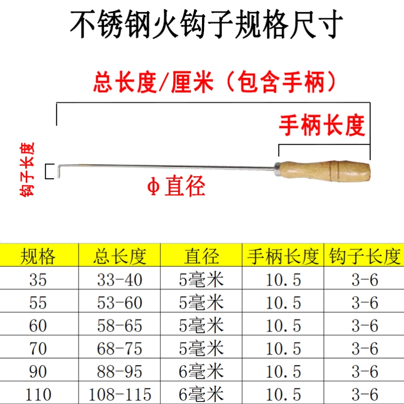 拐杖火棒聚宝桶不锈钢烧火棍五七周年祭祀用品炉子铁钩铁钩子清明
