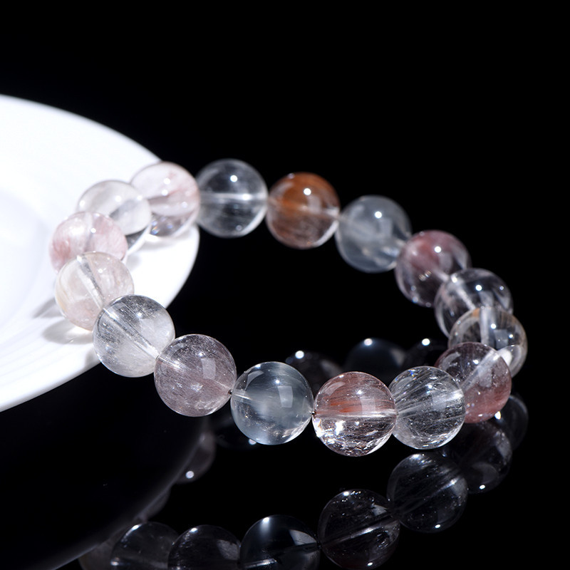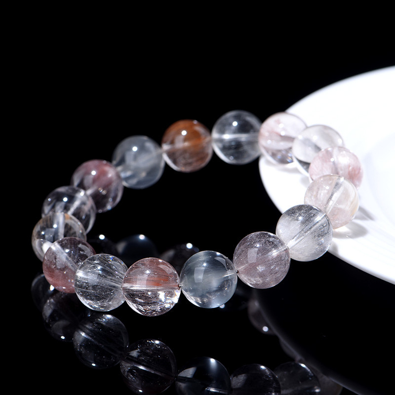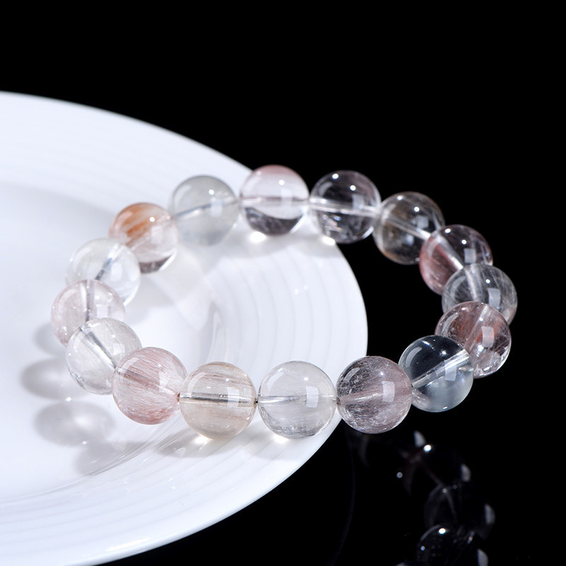 盖亚回声 天然钢丝兔毛粉兔毛圆珠手链 粉丝兔毛散珠手串
