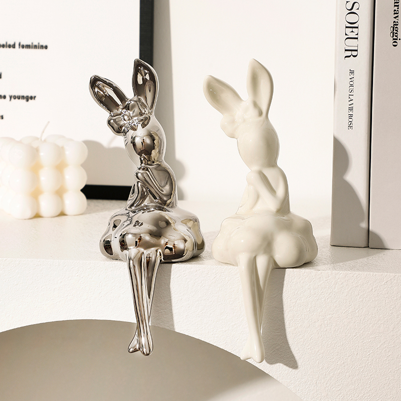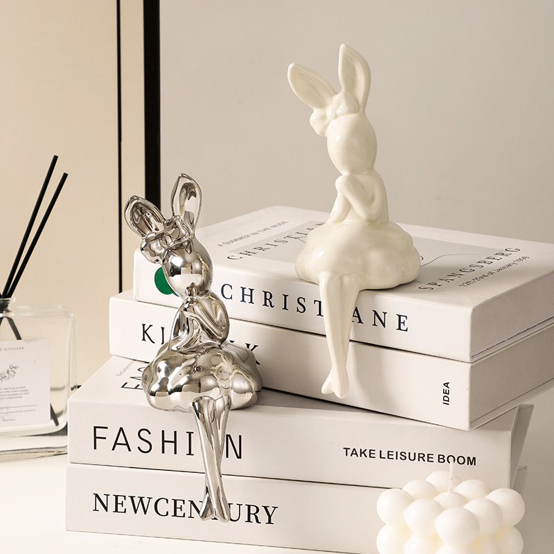 长耳兔子软装高级感酒柜装饰品摆件客厅电视玻璃柜轻奢书立书档