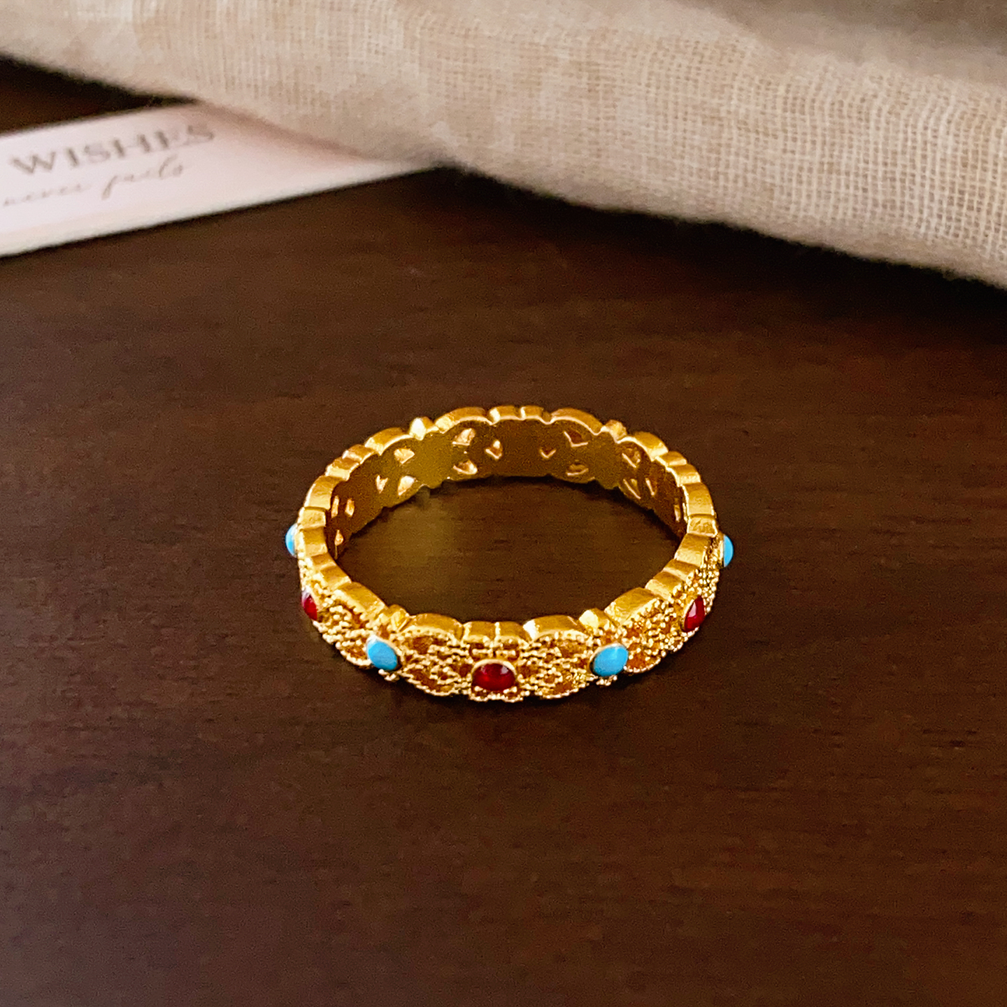 古法沙金镂空绿石戒指女小众设计2025新款爆款食指戒巨好看的指环