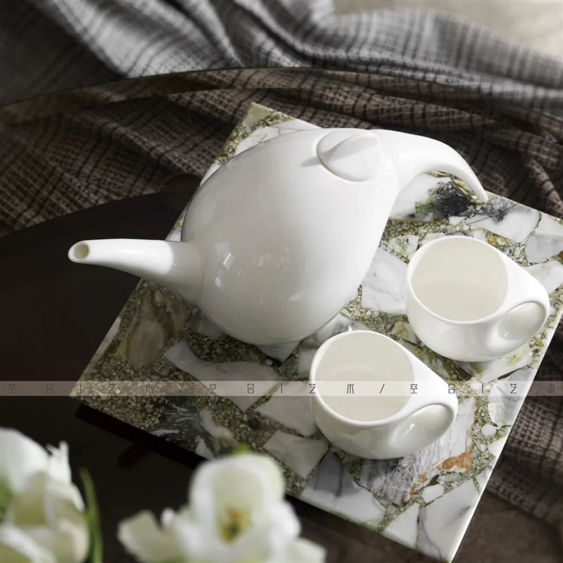 空合样板间新中式简约白色陶瓷茶具售楼部洽谈区茶几装饰茶壶茶杯