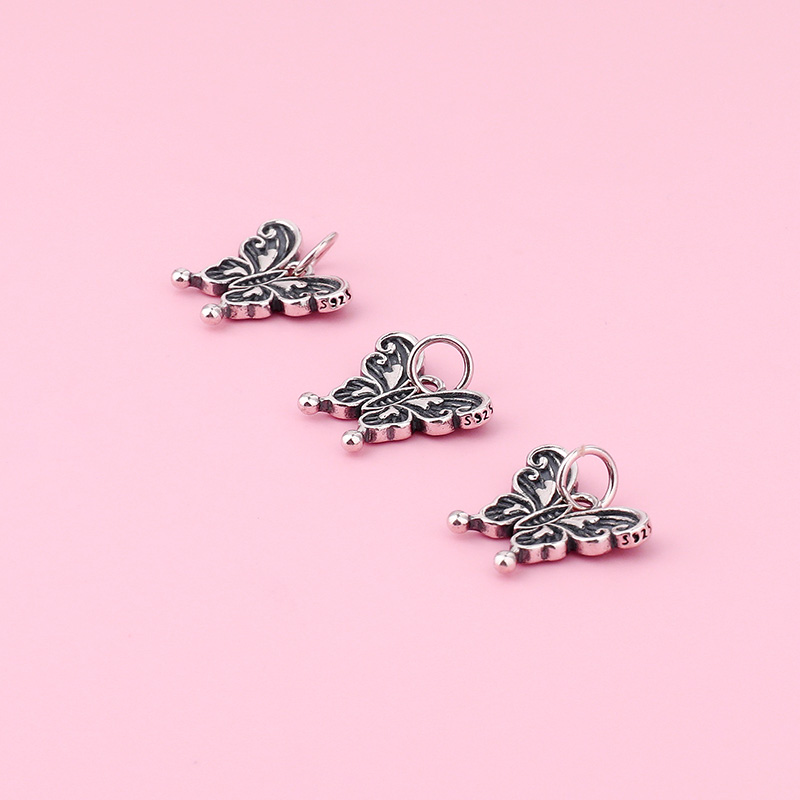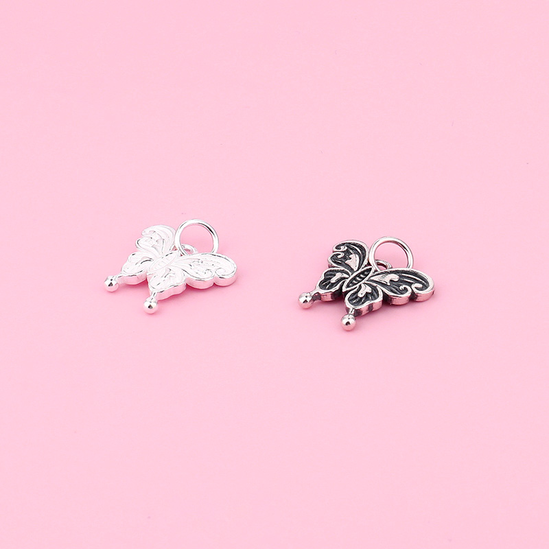 项链手链复古挂件925纯银项链实心蝴蝶吊坠 ins子饰品diy配件