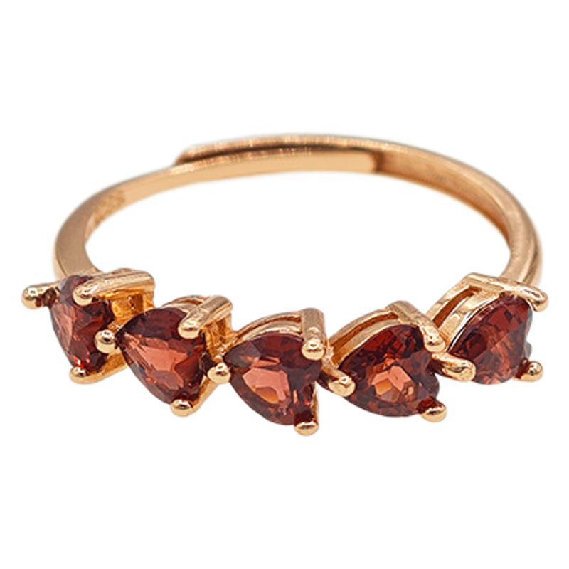新款天然石榴石戒指S925银镶嵌玫瑰金色戒饰女款开口气质时尚指环