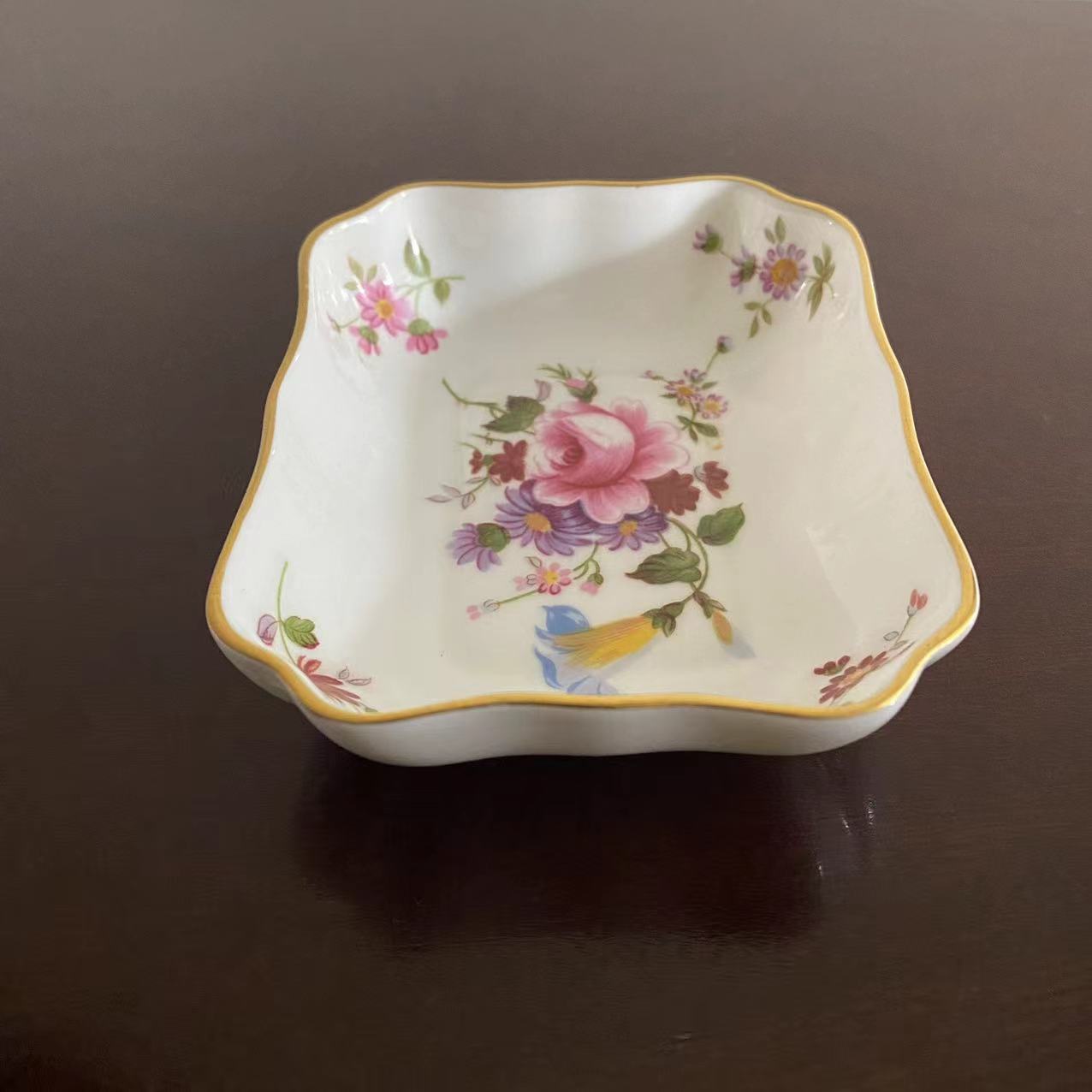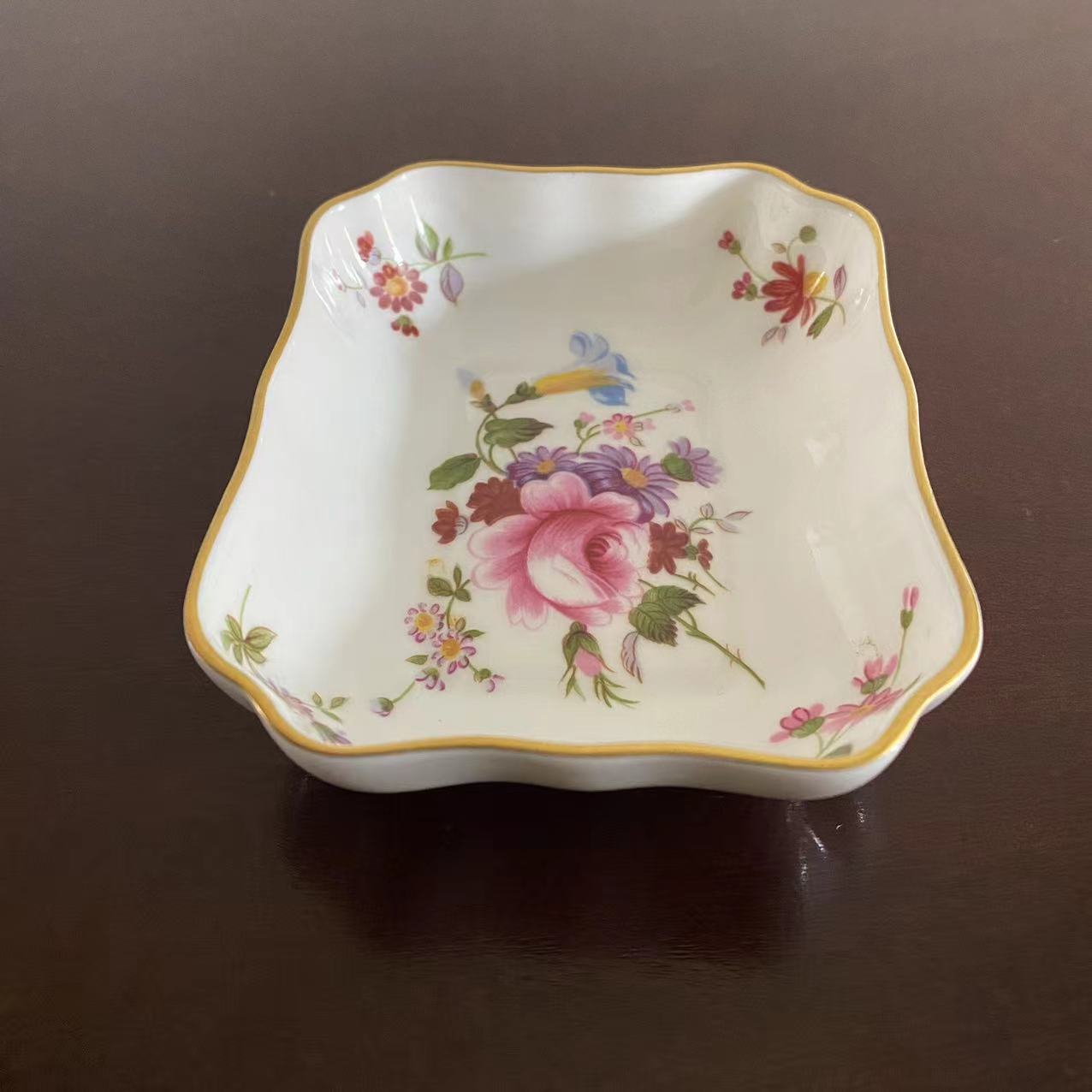 Royal Crown Derby 皇家皇冠德比 描金花束长方首饰盘 装饰瓷碟摆