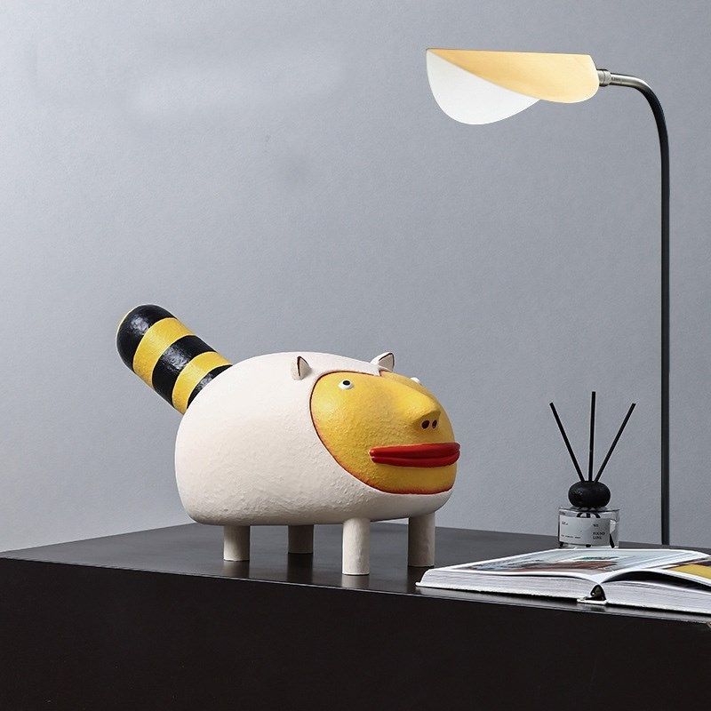现代简约创意抽象彩绘动物雕塑摆件样板间艺术设计客厅书柜装饰品