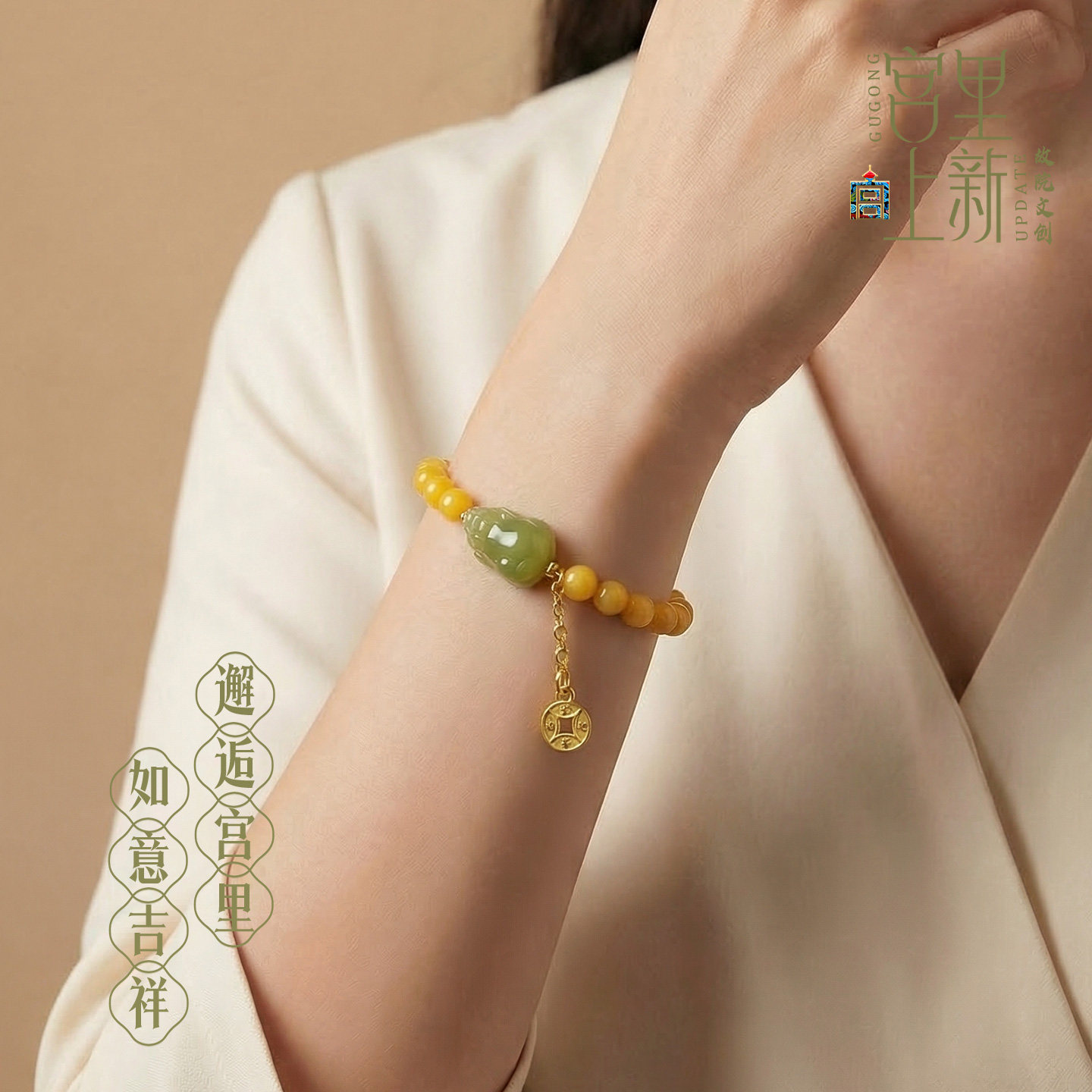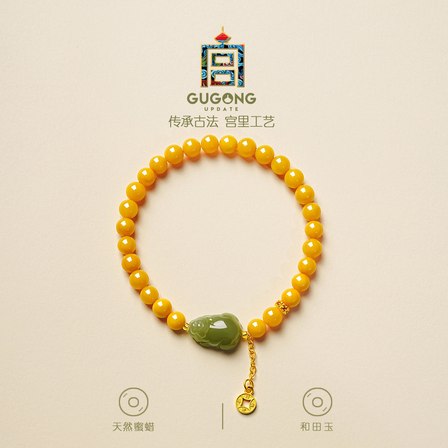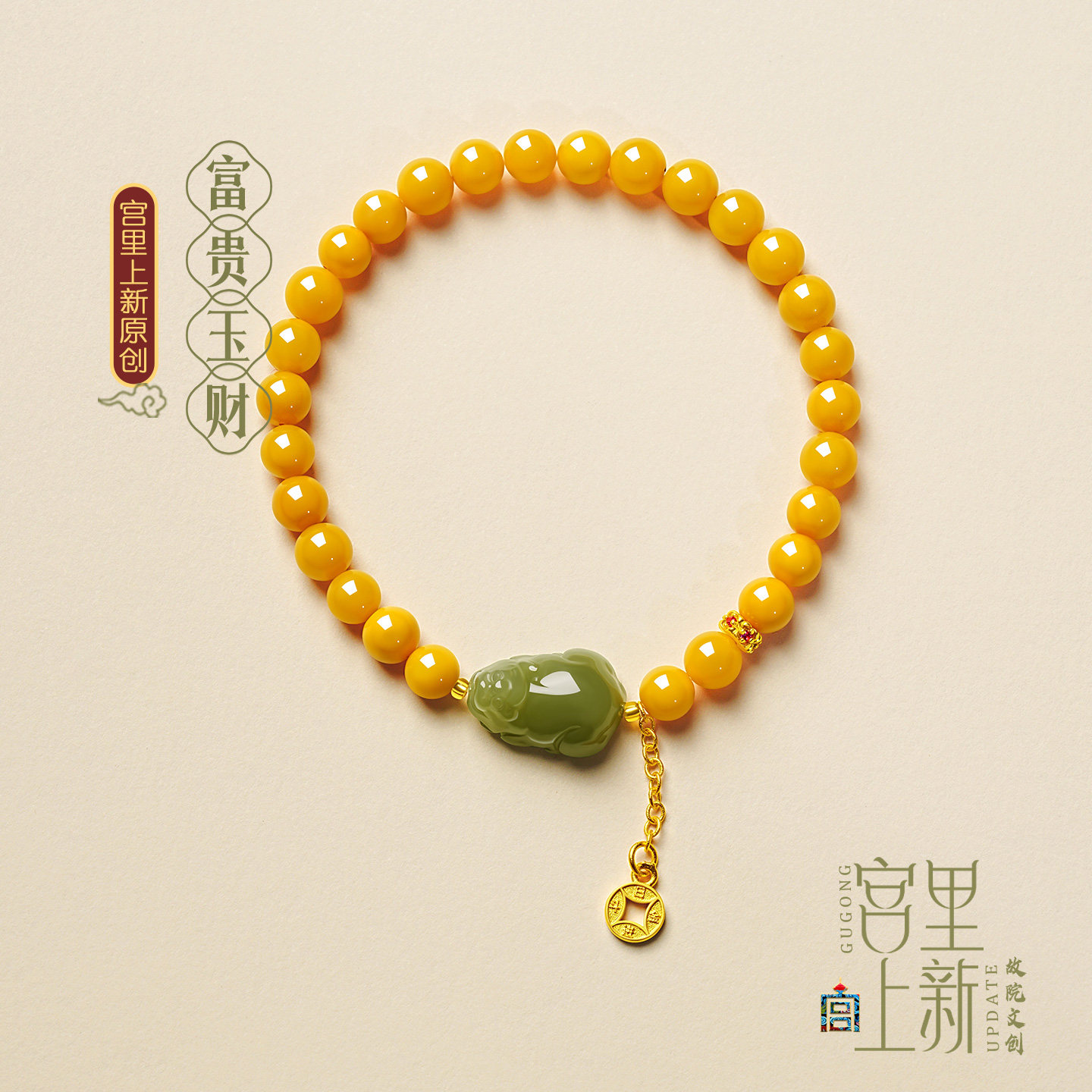 宫里上新蜜蜡手串女款鸡油黄色手链串珠天然生日母亲节礼物送妈妈