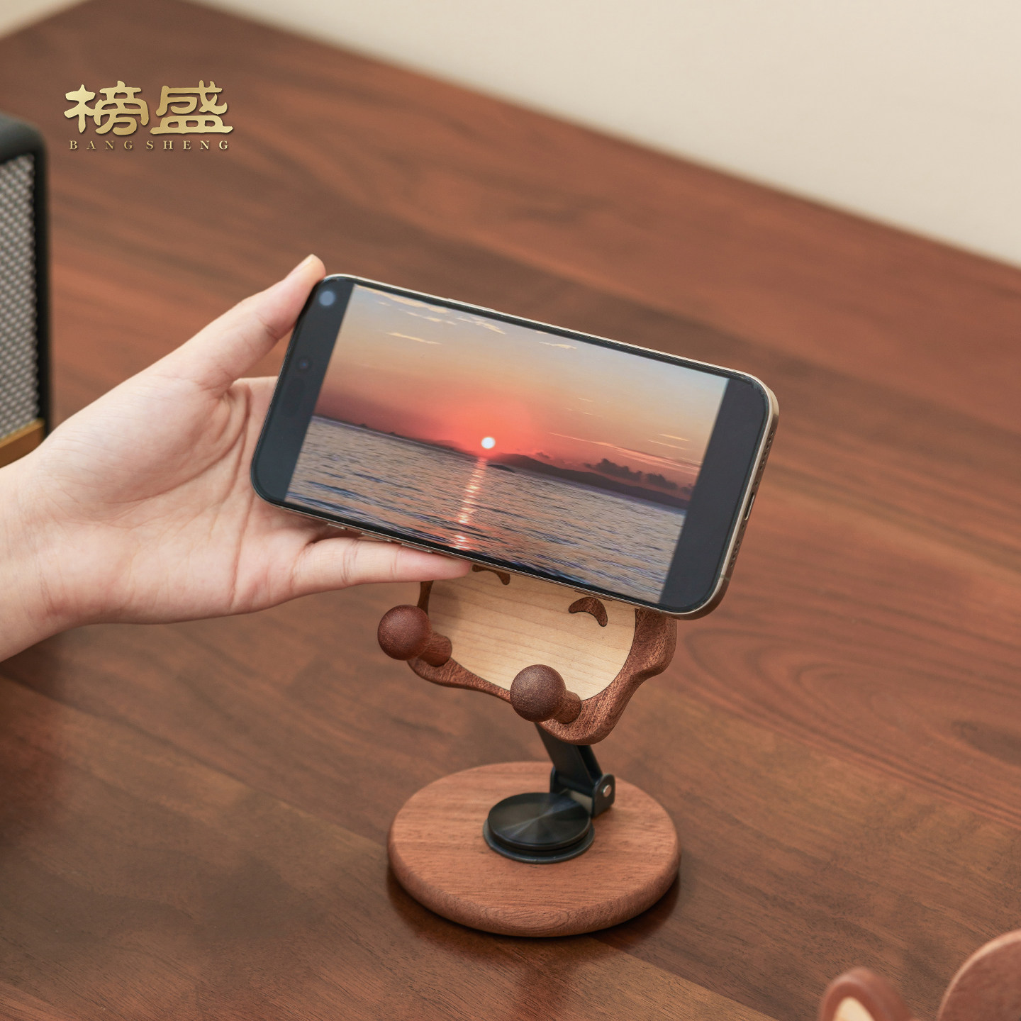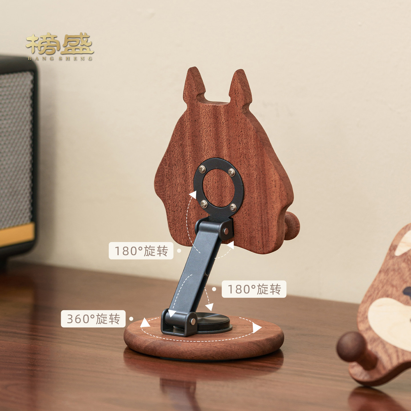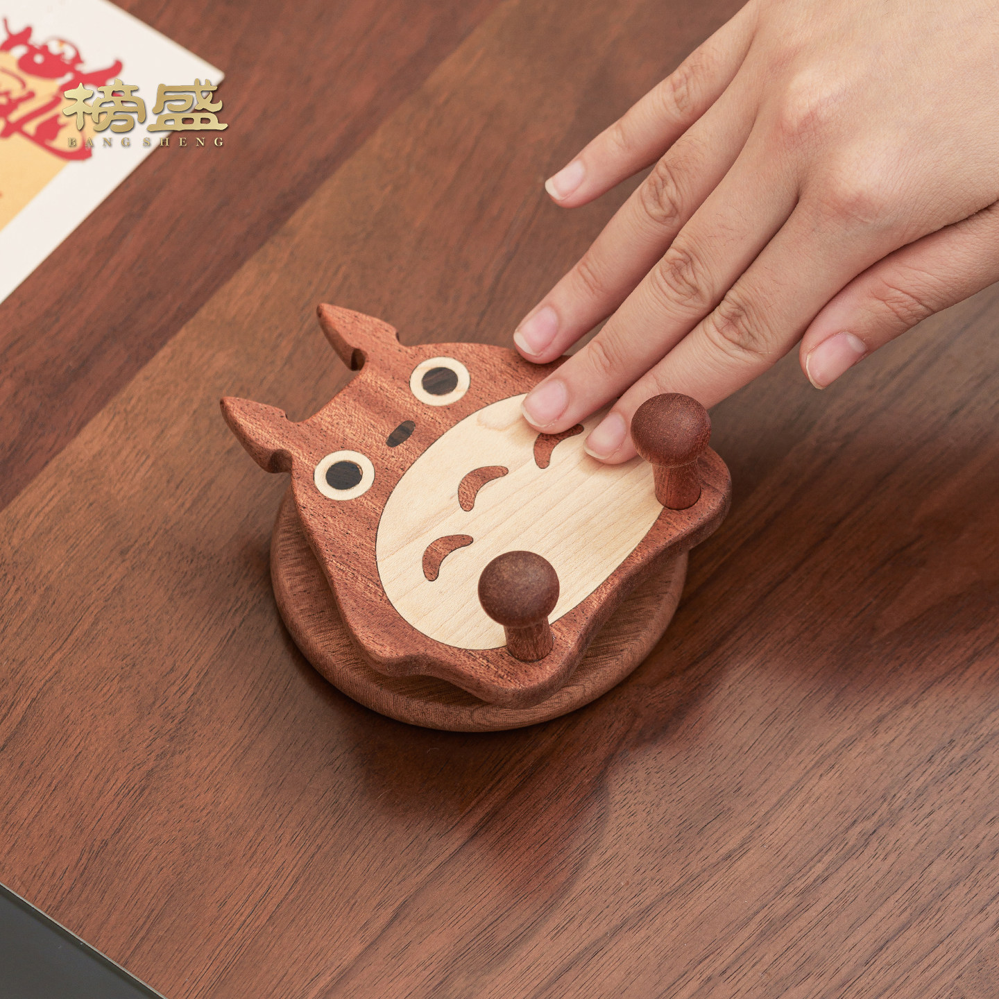 榜盛实木龙猫手机支架桌面装饰摆件可爱卡通创意手机收纳架