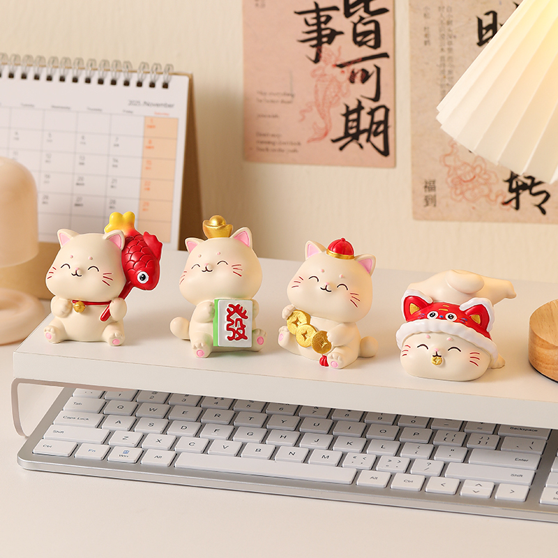 可爱锦鲤招财猫小摆件办公室桌面治愈系装饰品送女生闺蜜生日礼物