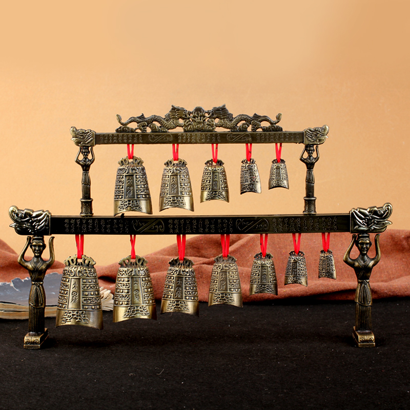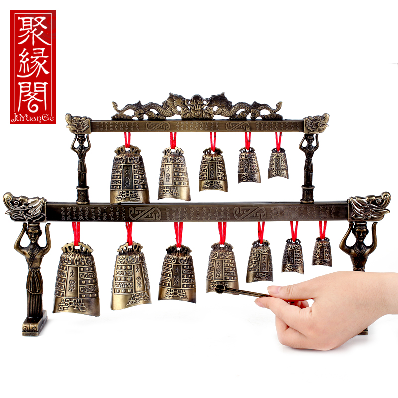 聚缘阁中式合金演奏乐器仿古双层编钟模型摆件工艺品婚庆影视道具