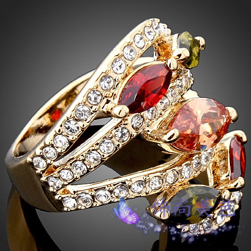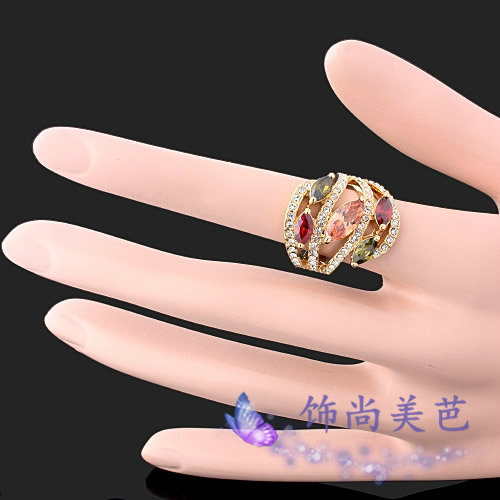 日韩新品锆石大戒指女士彩色水晶奢华指环潮人个性玫瑰金食指钻戒