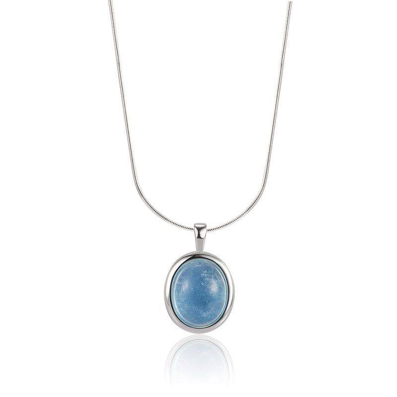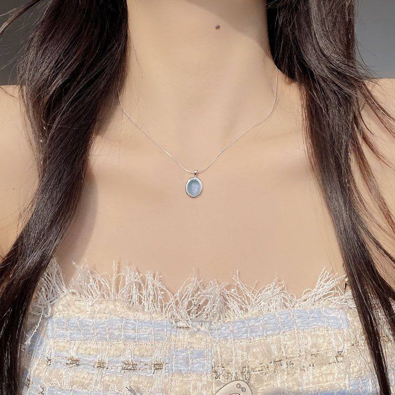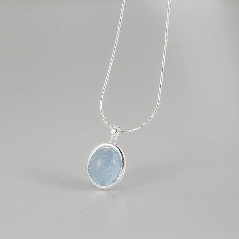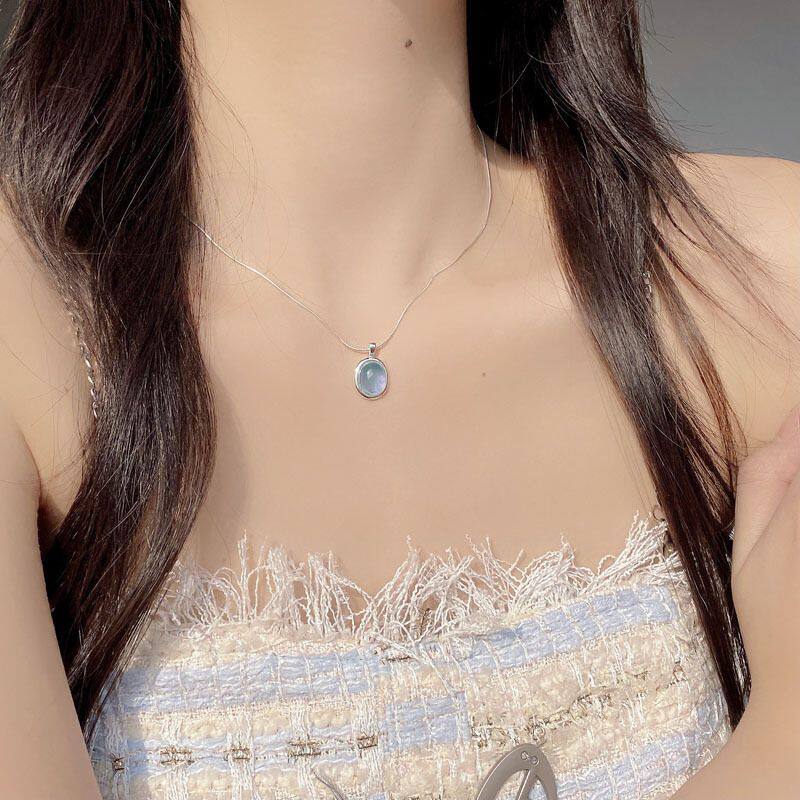 韩国INS设计师S925纯银天然海蓝宝吊坠项链女轻奢小众设计锁骨链