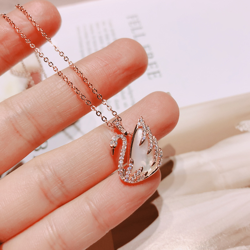香港正生纯银纯银925白贝母天鹅银项链女戴东大门潮流银饰品