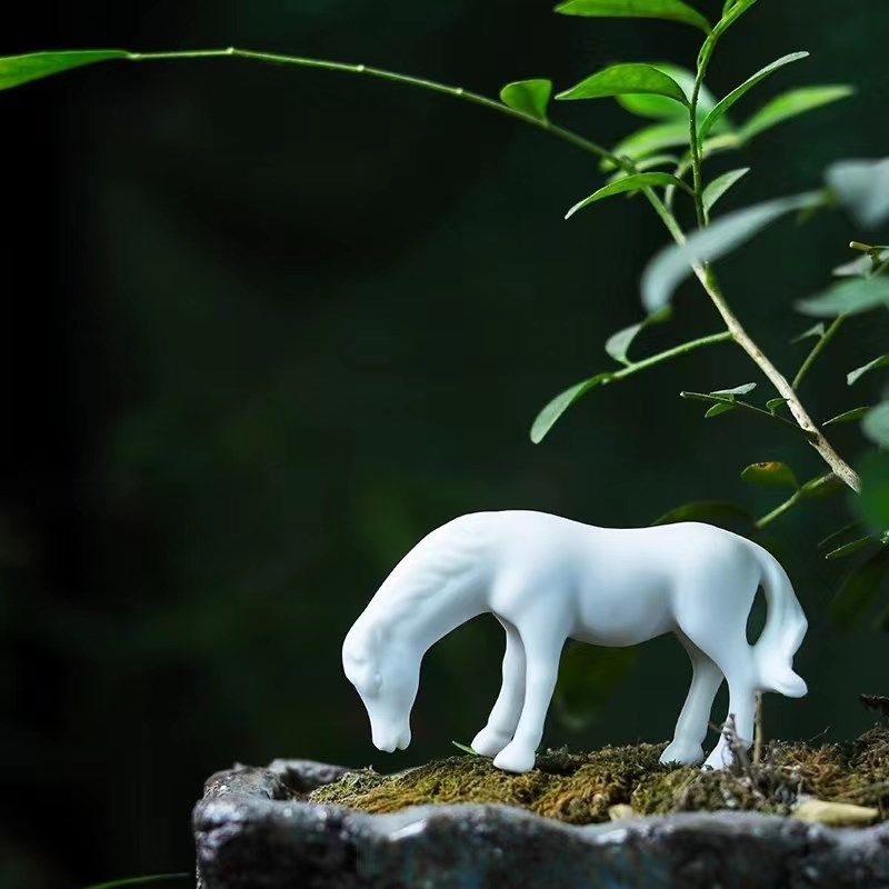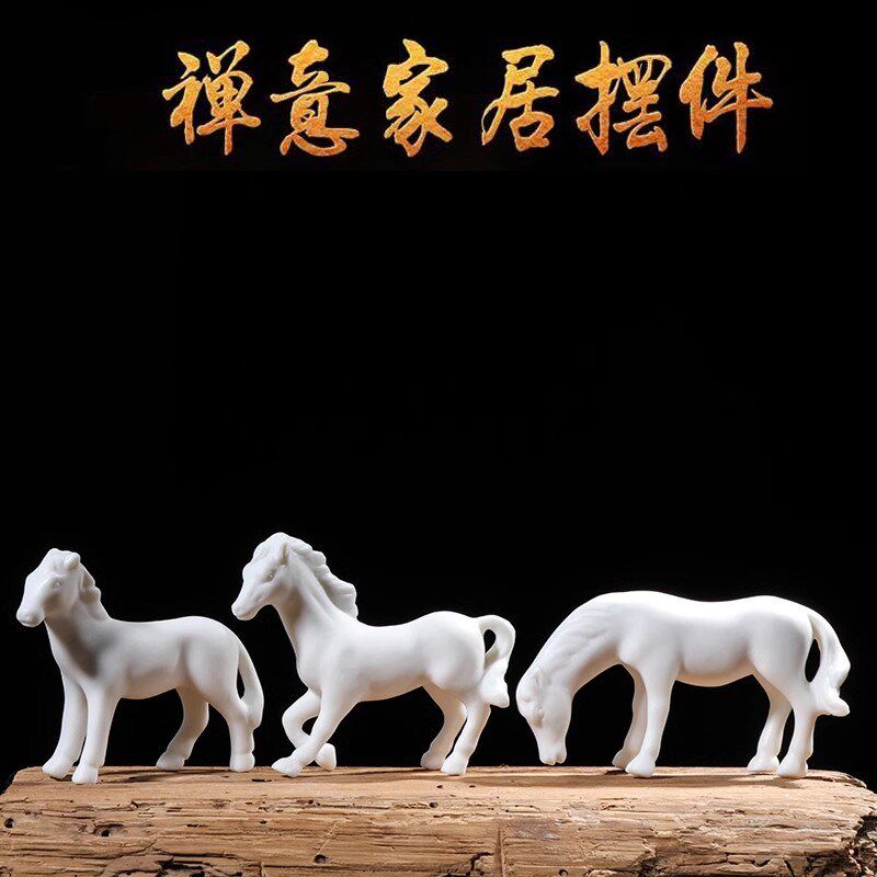 陶瓷小白马客厅书房生肖马办公室桌面装饰鱼缸微景观盆景园艺摆件