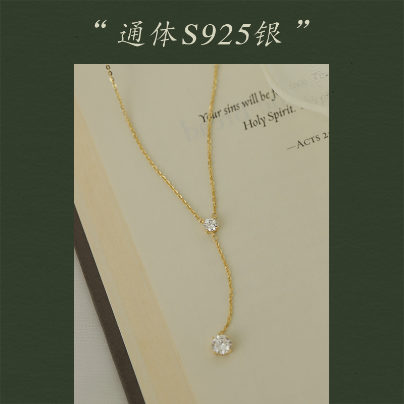 S925纯银原创设计简约超闪锆石Y形项链女新款高级感轻奢锁骨链