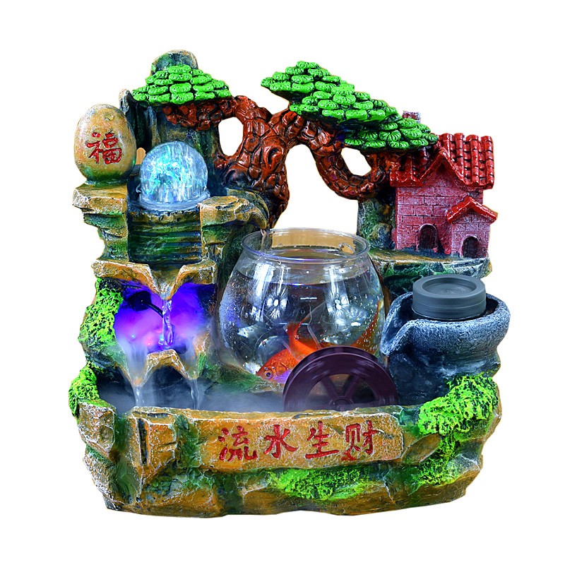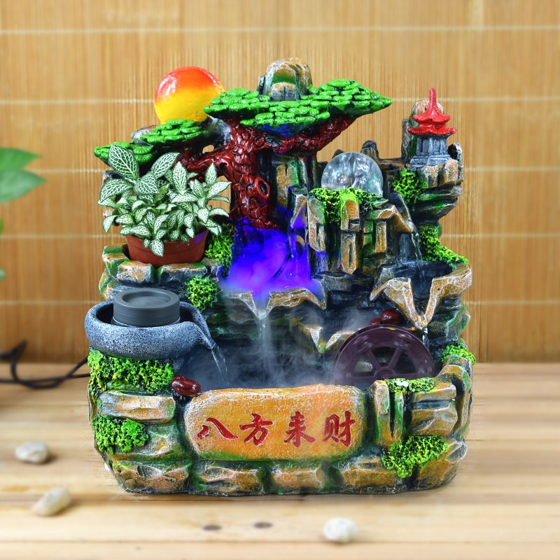 风水轮玄关生招财流水景假山摆件加湿器店铺开业搬家礼物品鱼缸盆