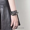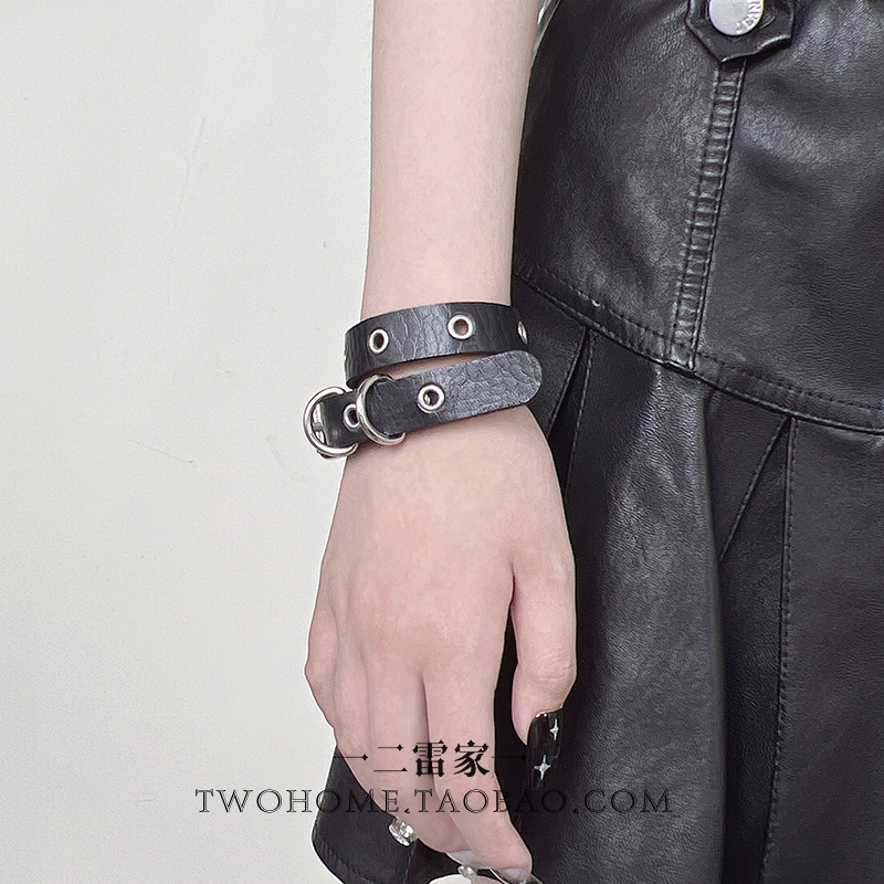 朋克哥特风两圈缠绕铆钉孔手环原宿亚文化皮带扣手腕带pu手链饰品