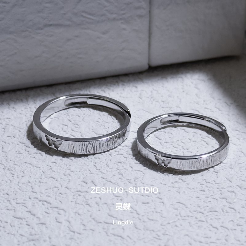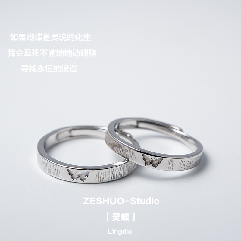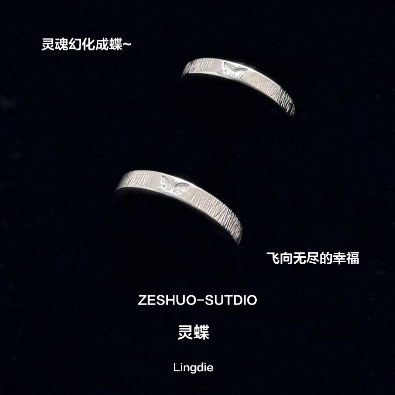 ZESHUO灵蝶 蝴蝶原创情侣对戒999纯银小众男女款足银戒指可调节