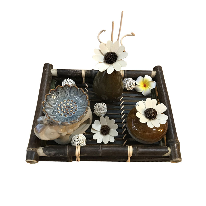 特色美容床上装饰摆件藤条香薰摆件组合香薰炉带托盘装饰小摆件