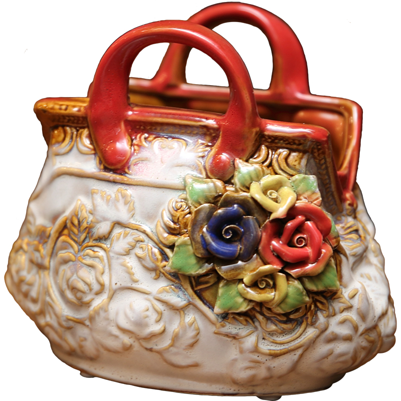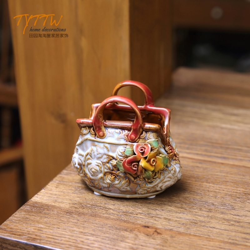 田园手工玫瑰浮雕釉面包包装饰花器文艺花器