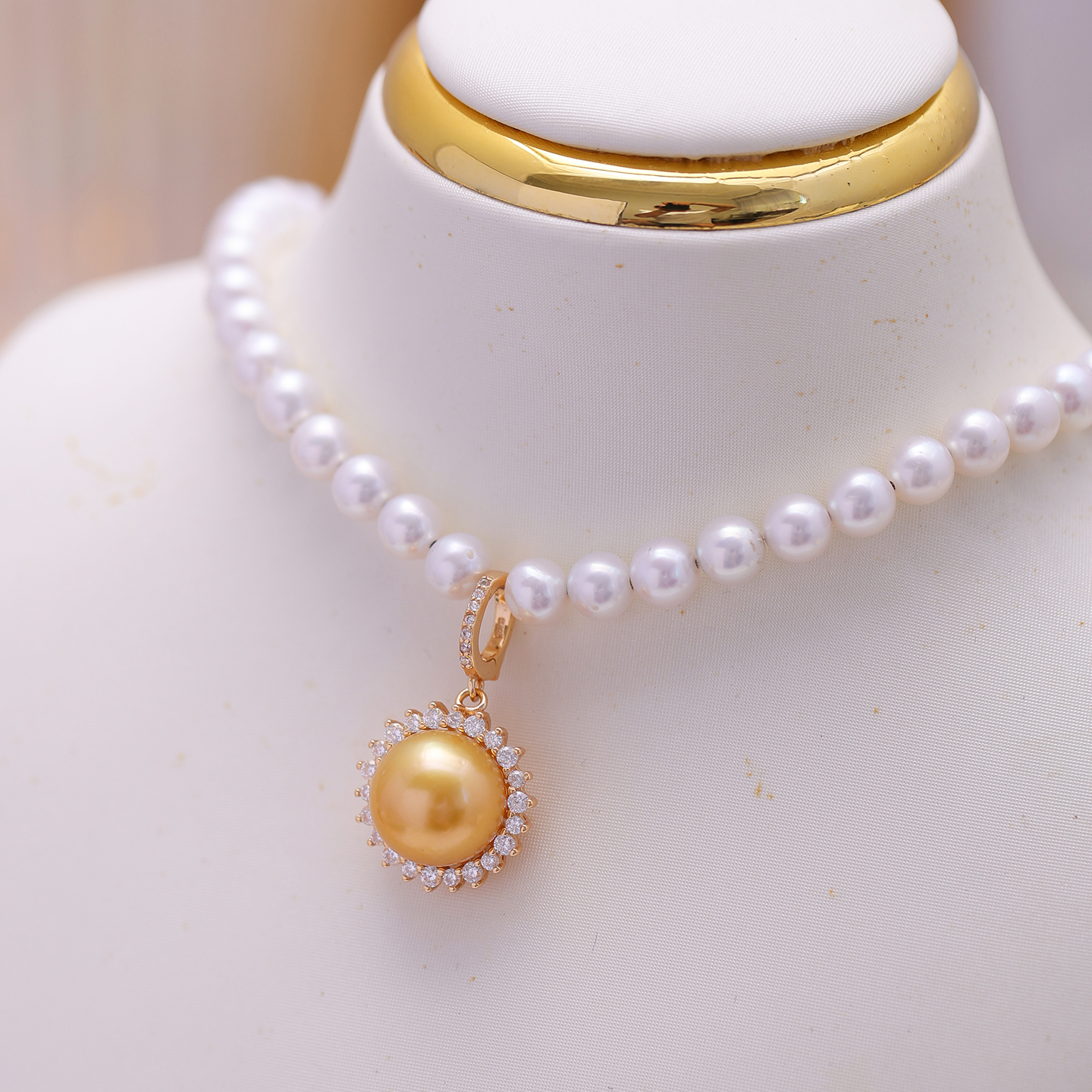 DIY珍珠配件s925纯银可拆卸二用经典太阳花项坠项链坠配10-11.5mm