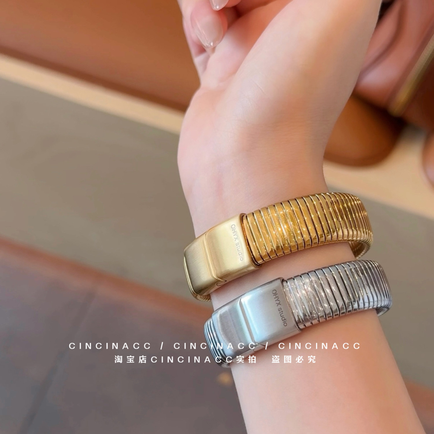 不掉色~个性夸张弹簧卡扣字母手镯ins冷淡风简约气质百搭手环手饰