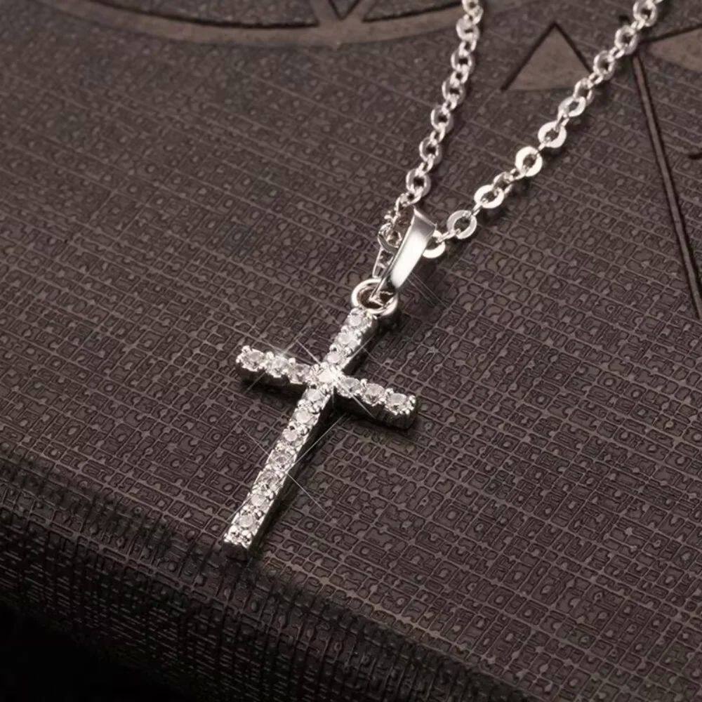 Cross Pendant Rhinestone Inlay Adjustable Necklaces Women So