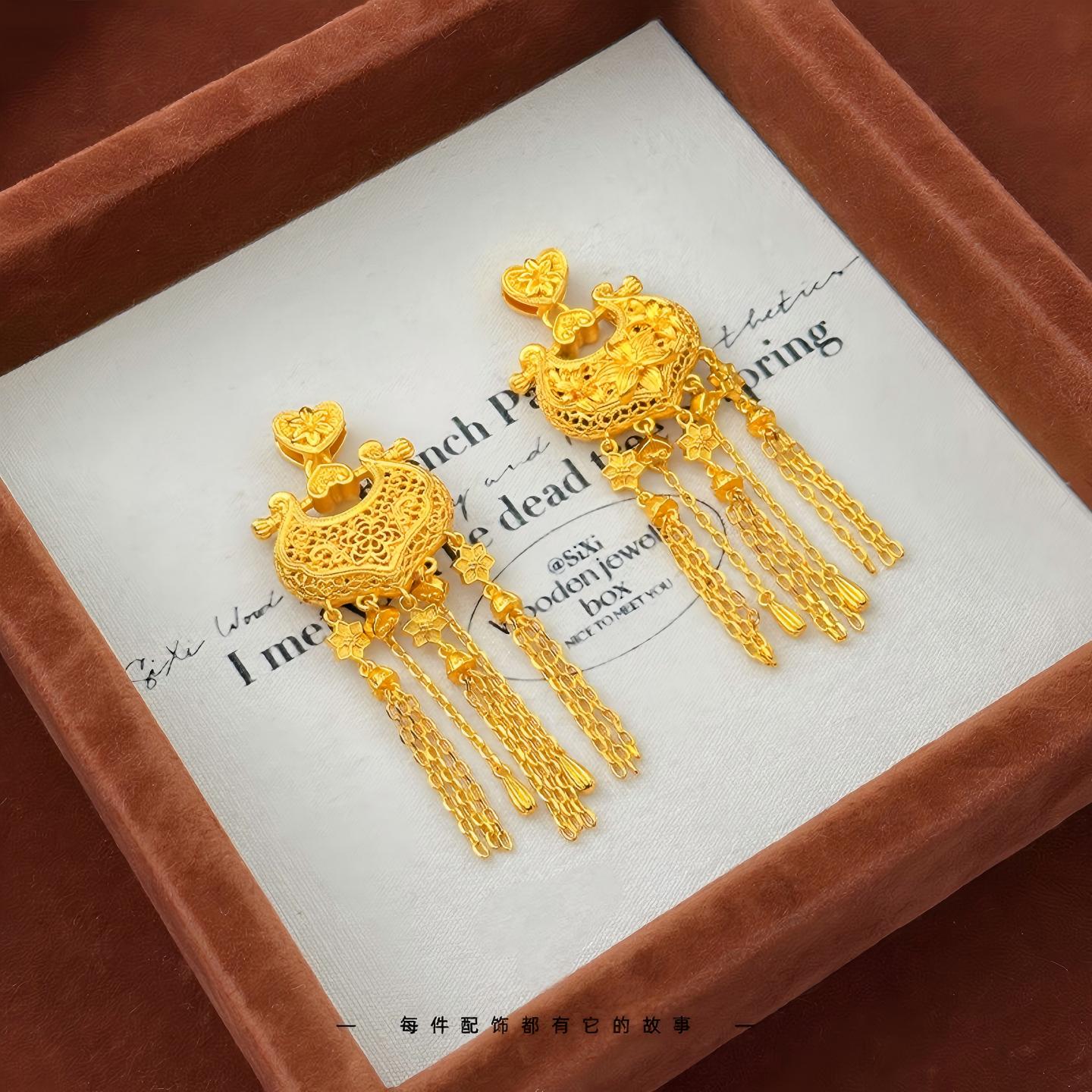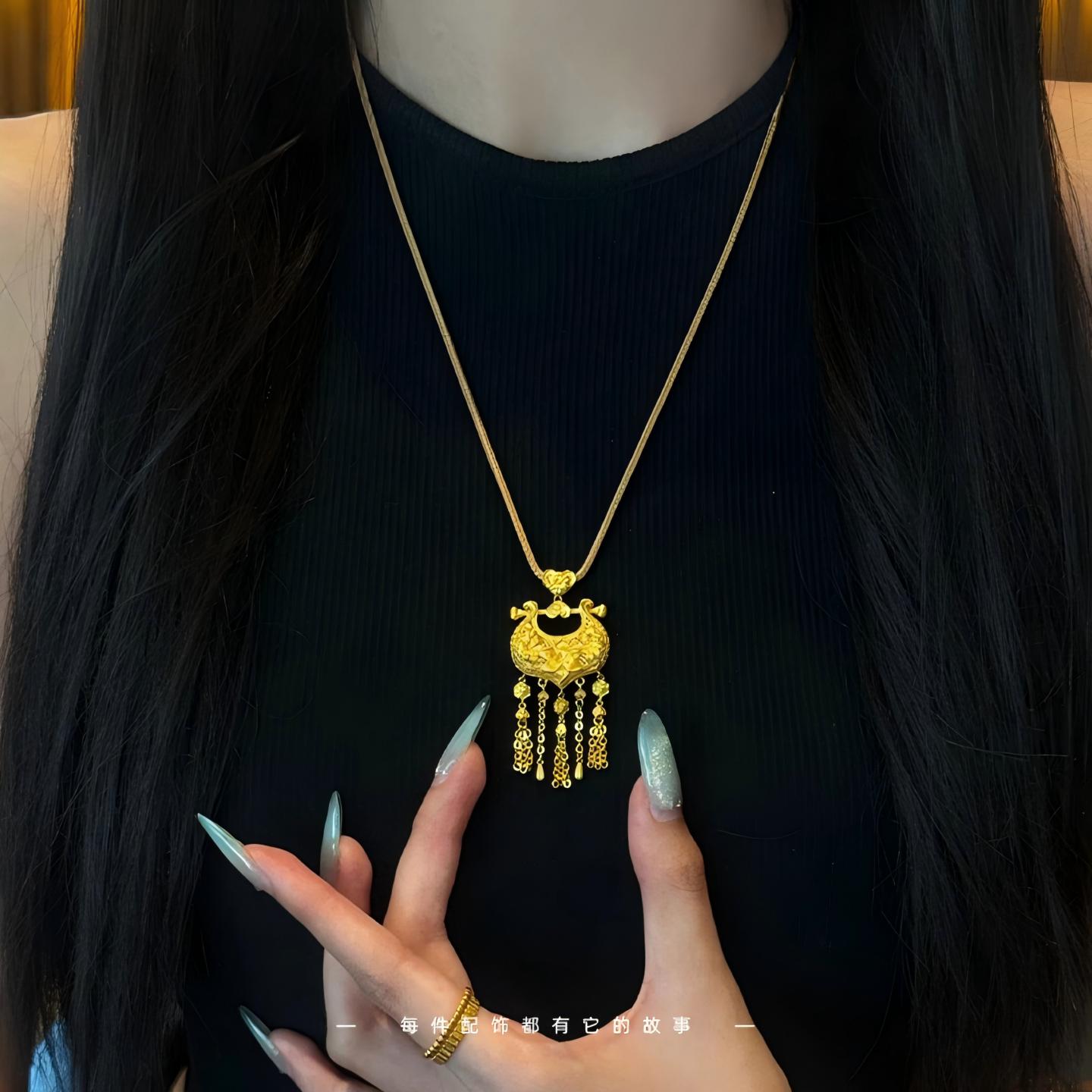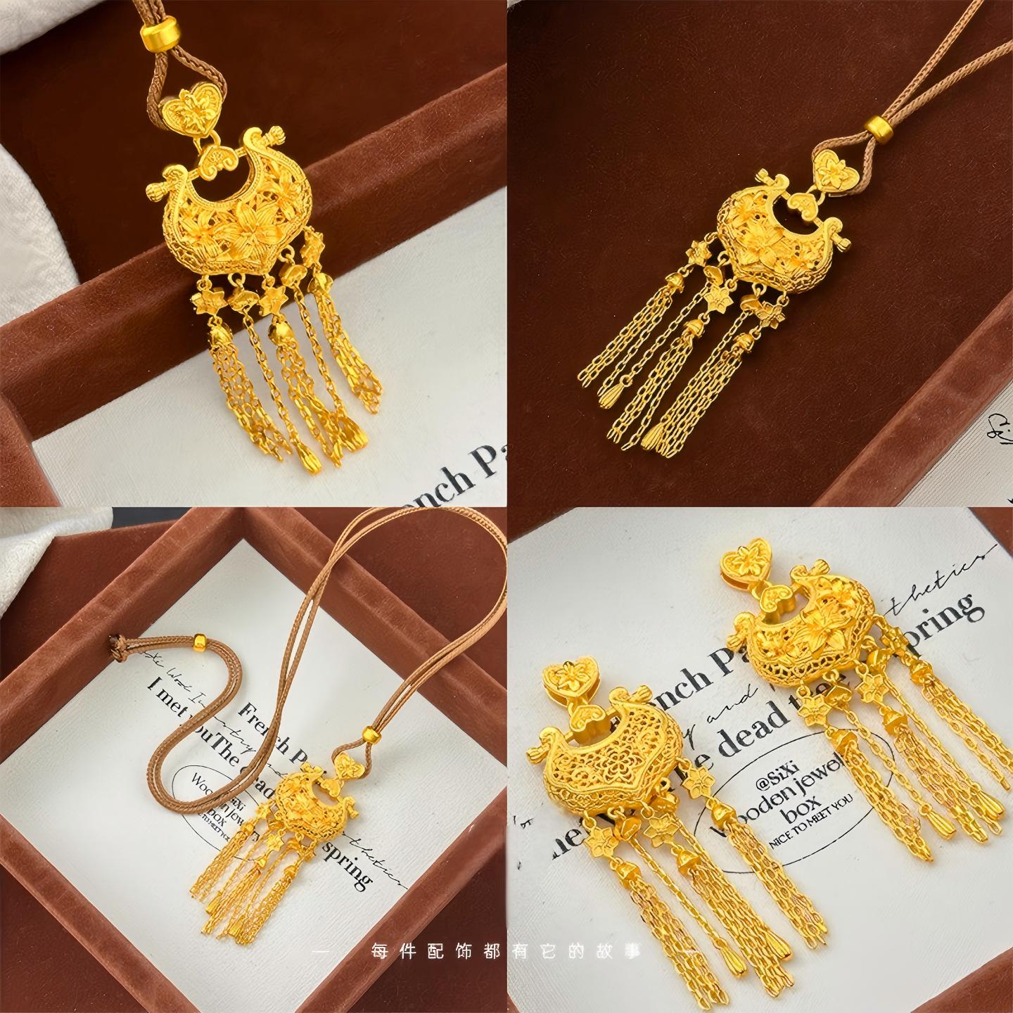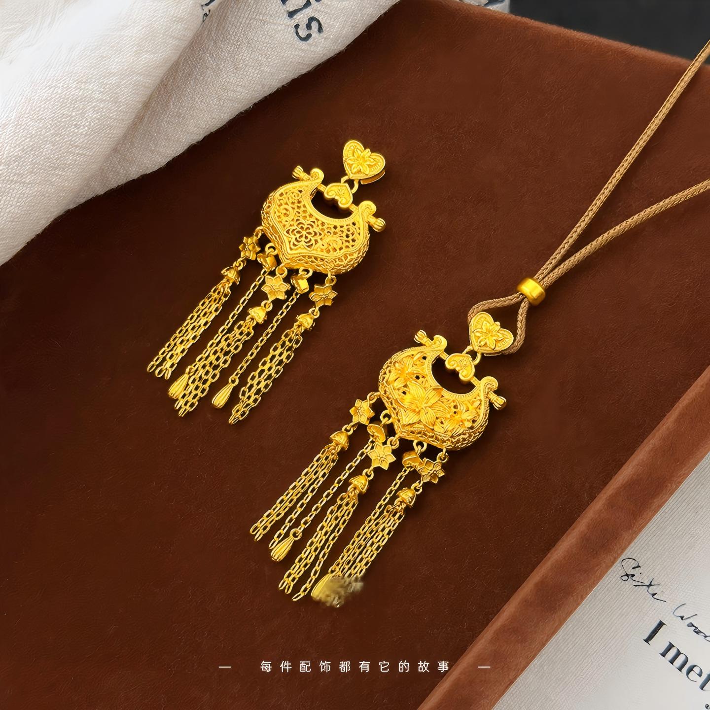 小红书周家同款新中式国风沙金镂空花丝如意流苏锁包吊坠挂坠项链