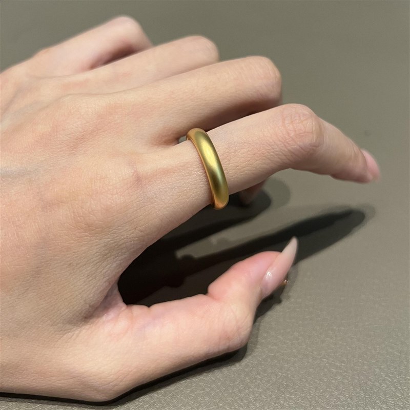 古法金包银泥鳅h背戒指女素圈亮面指环男情侣款尾戒生日礼物送女