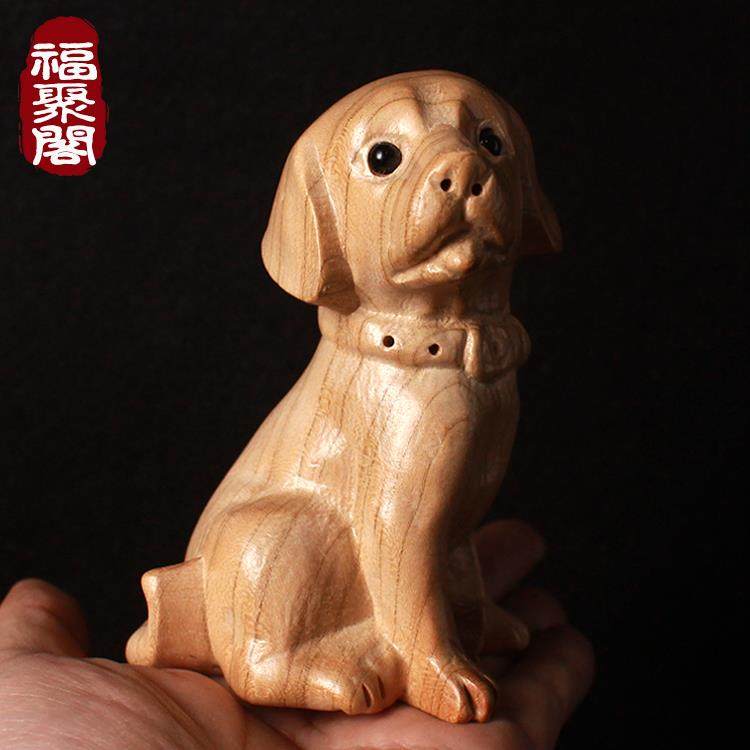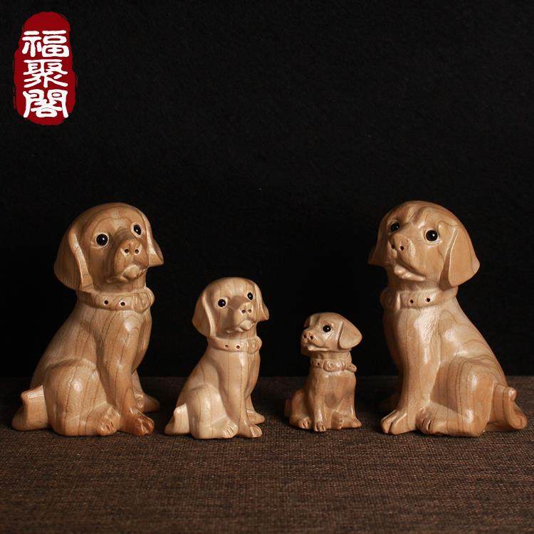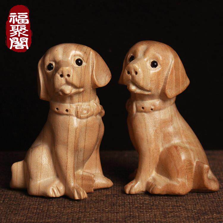 桃木狗摆件实木雕刻十二生肖旺财小狗客厅立体招财家居摆设工艺品
