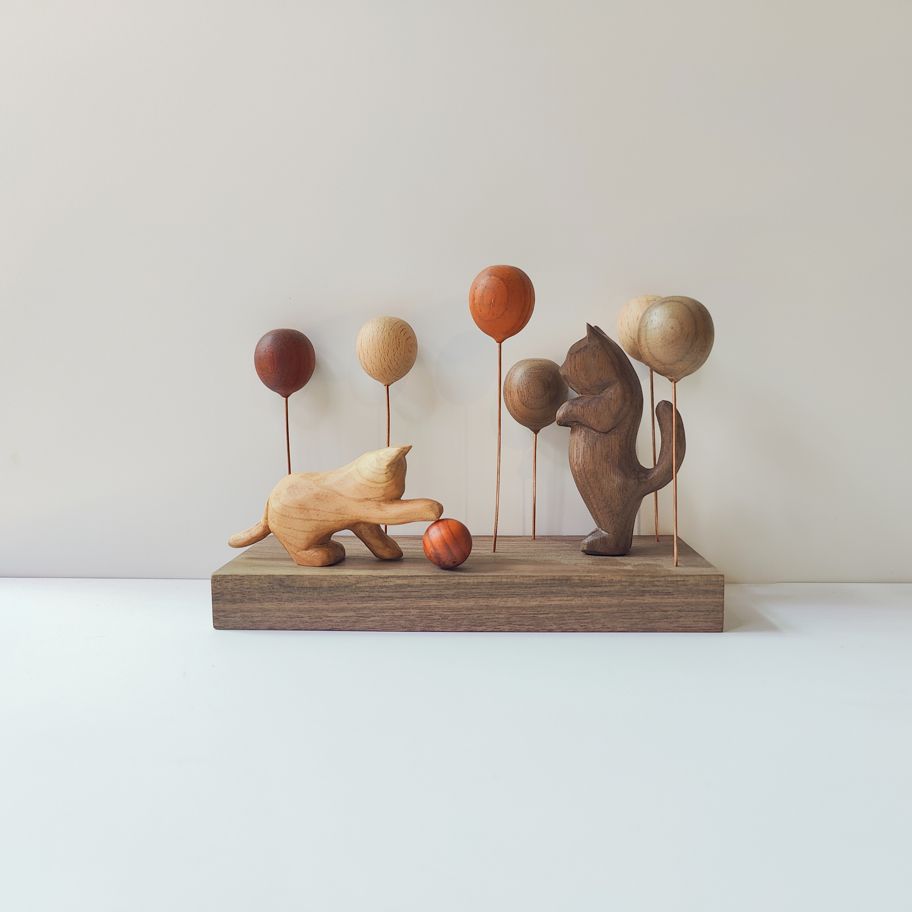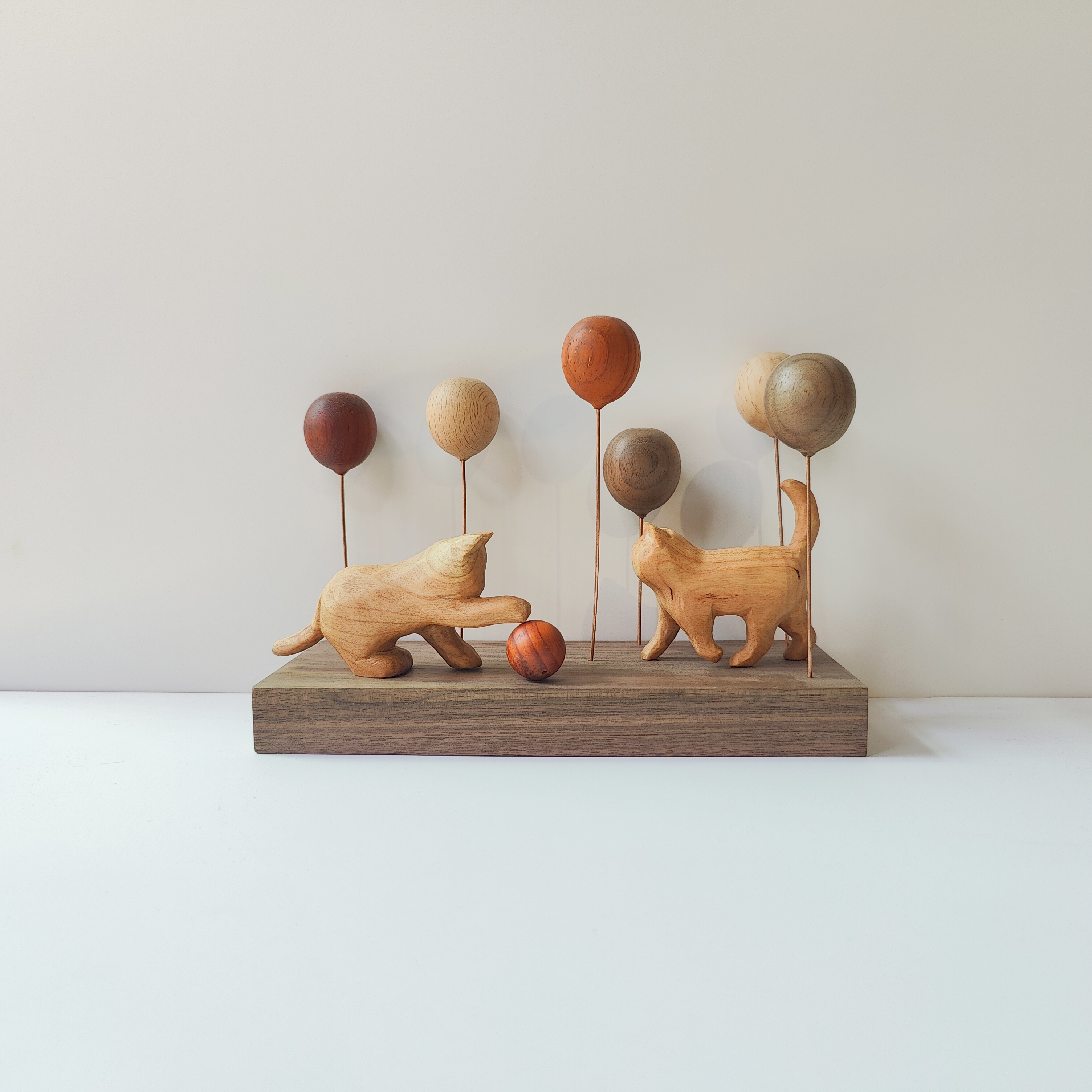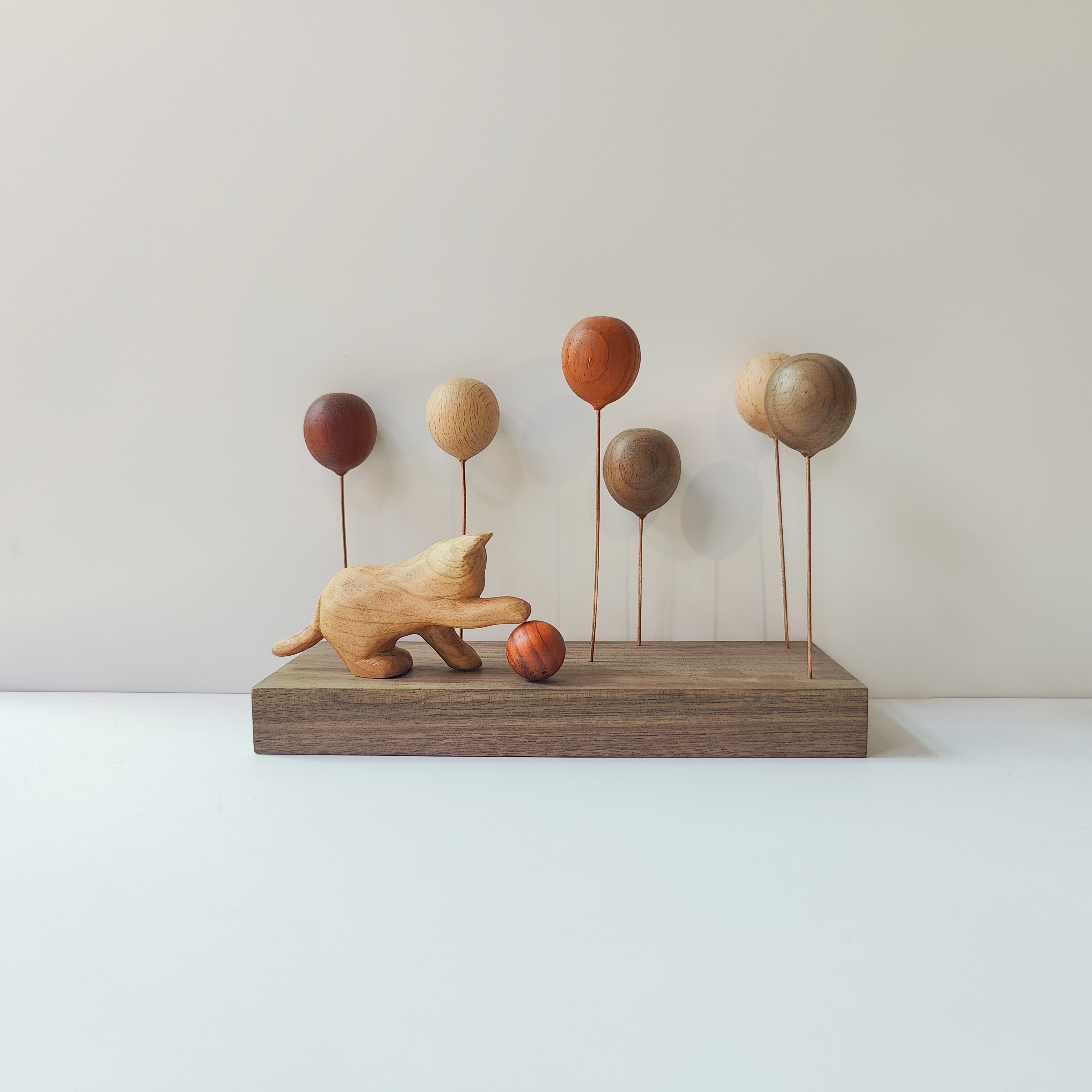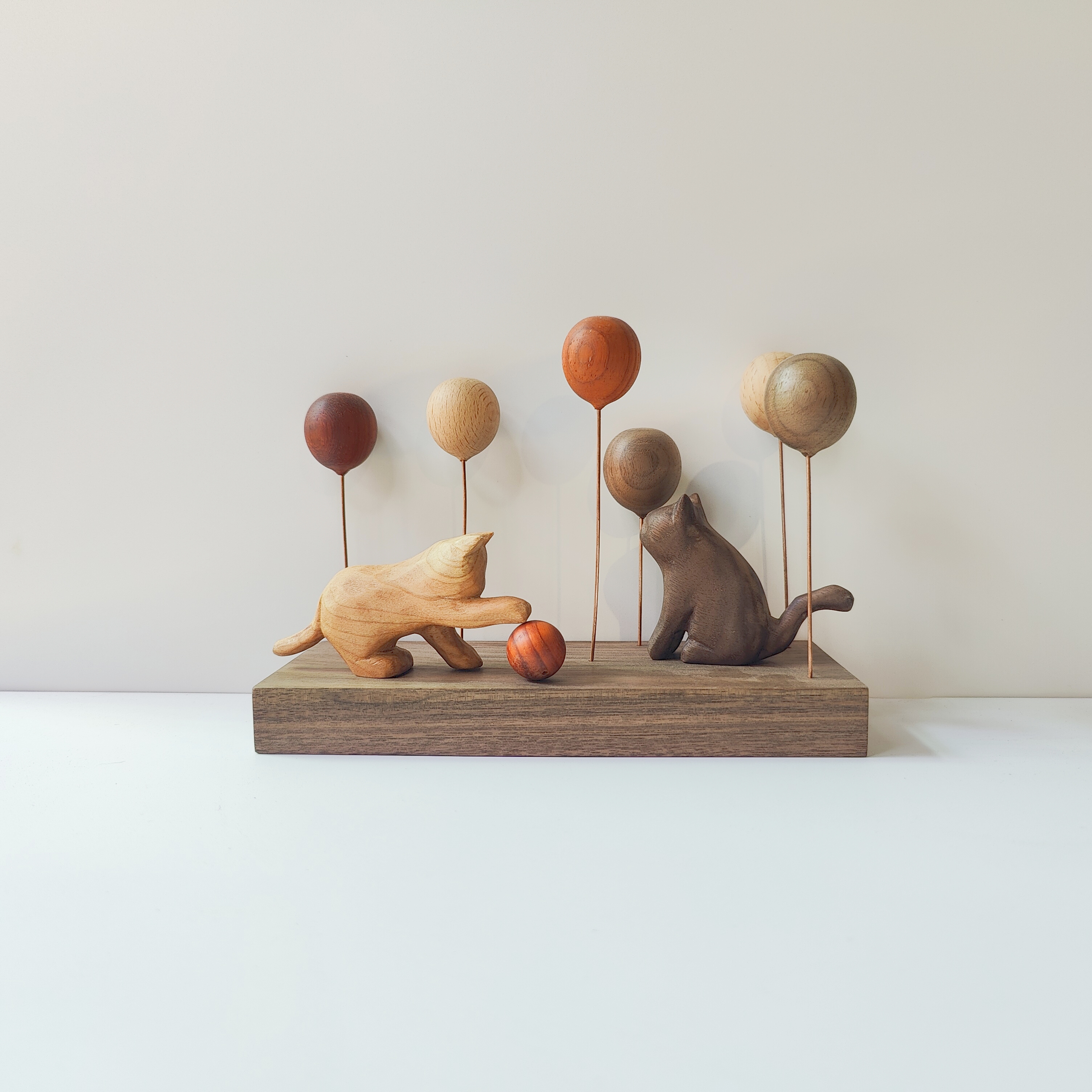 软萌治愈系 实木气球 朦胧猫木制手作氛围玄关车载装饰 桌面摆件