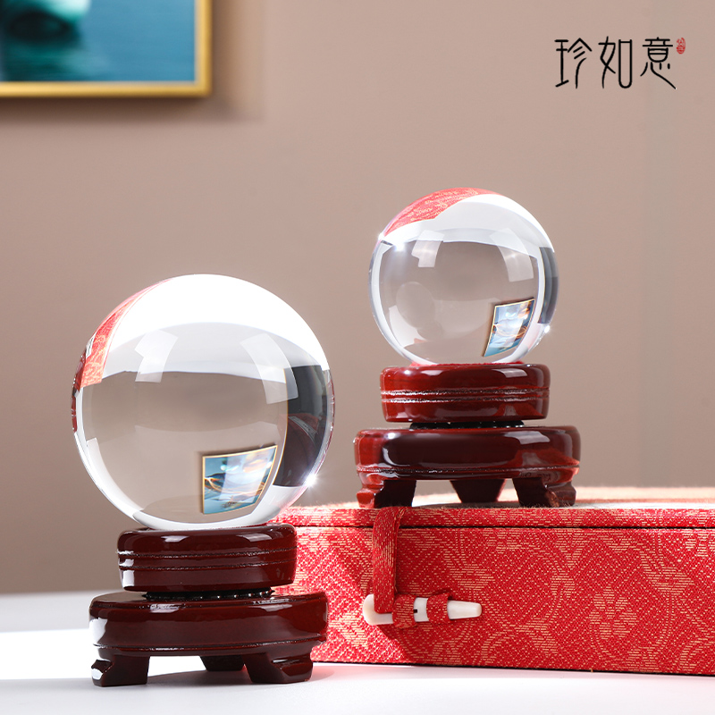 珍如意白色水晶球摆件圆球红粉黄玻璃球装饰品客厅办公桌家居