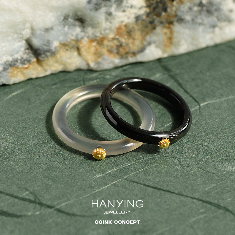 HANYING 雏菊戒指 玛瑙指环纯银原创设计师复古气质高级感 默叙
