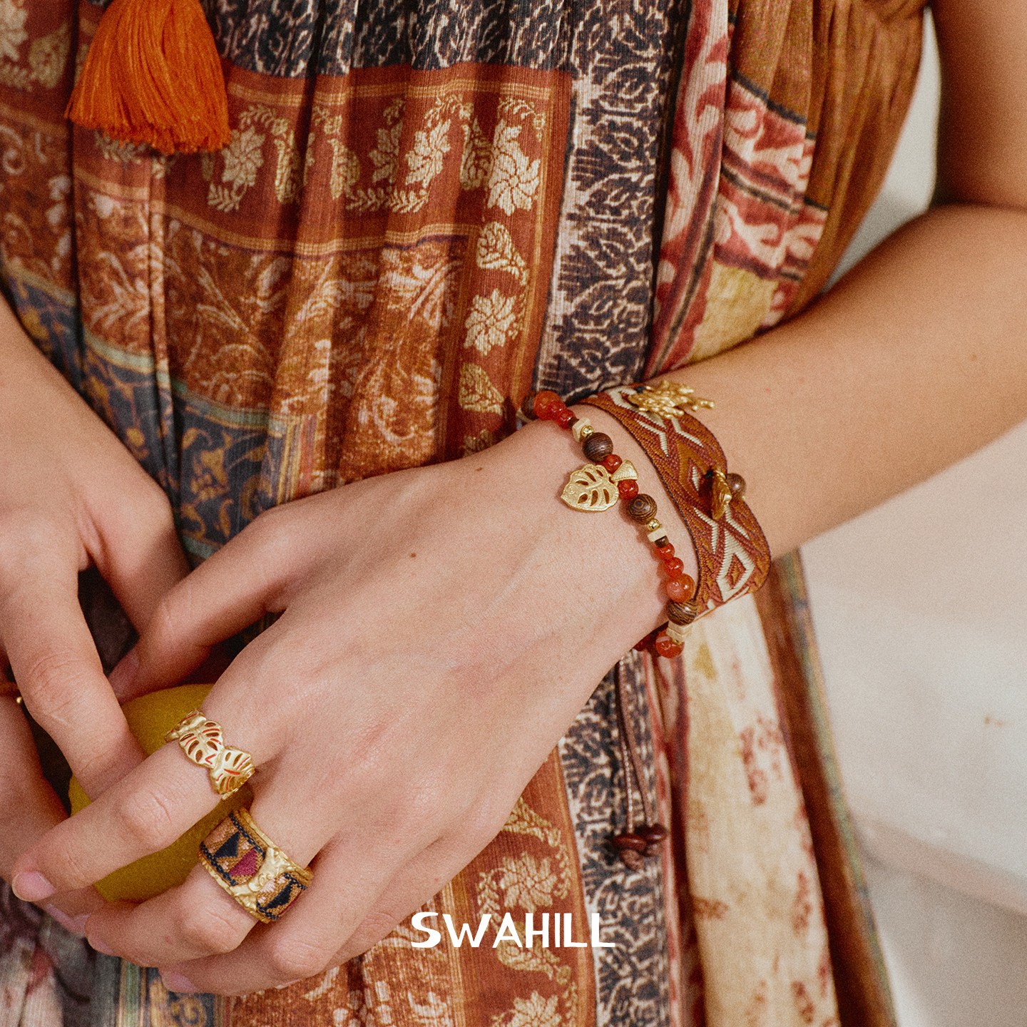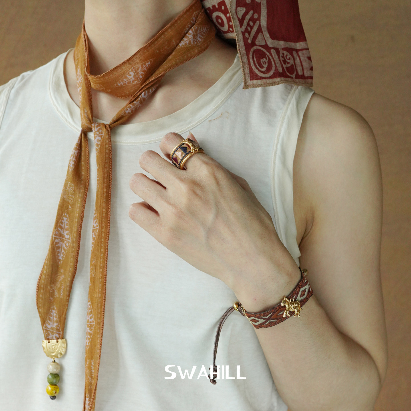 SWAHILL斯瓦山丘 斑马宽织带手绳 原创设计复古小众度假手链默叙