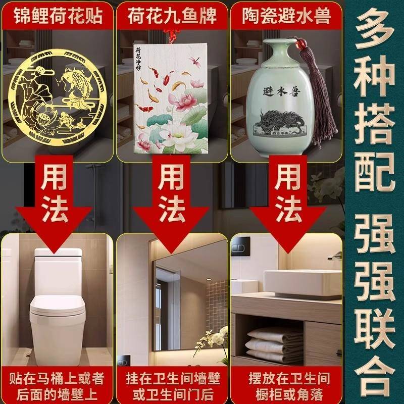 【荷花净秽】卫生间墙贴净秽金属贴鲤鱼莲花手机贴鞋柜卫生间莲花