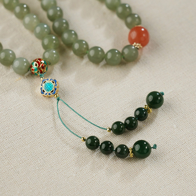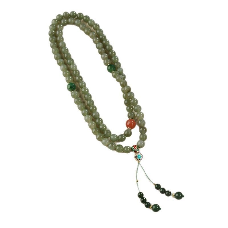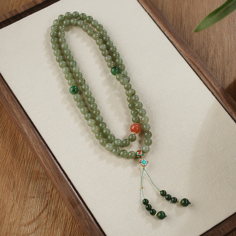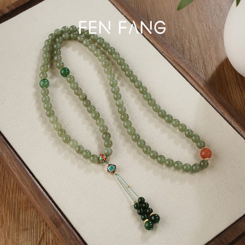 新中式长款和田玉绿色串珠项链女国风复古气质一款多戴毛衣链配饰