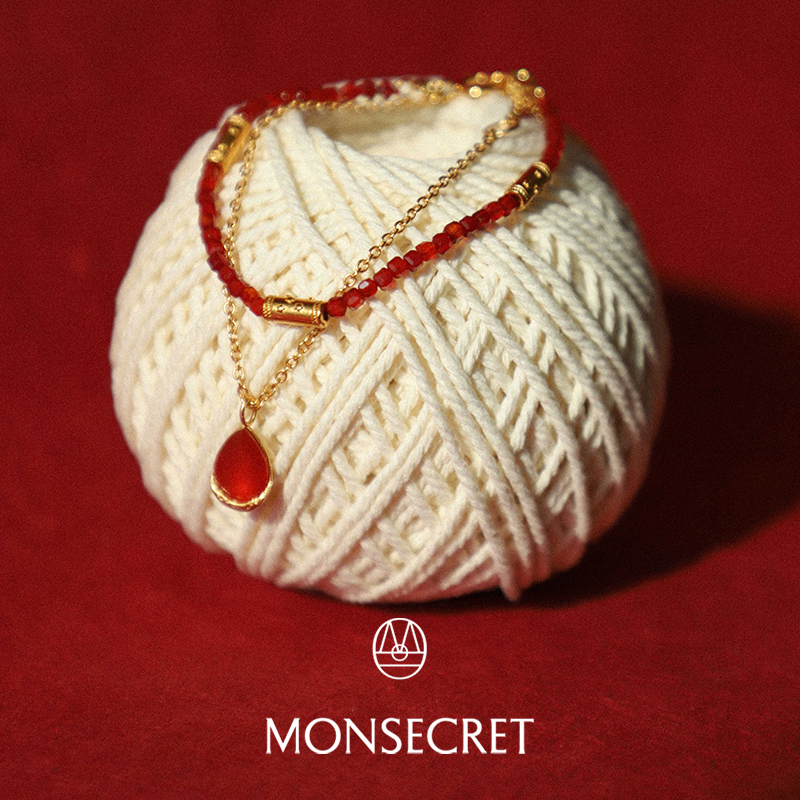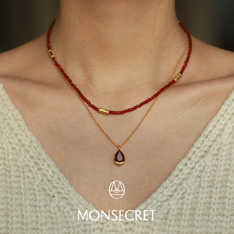 MONSECRET星尘多用叠戴款项链春夏爆款安可拉红玛瑙串珠双层链女