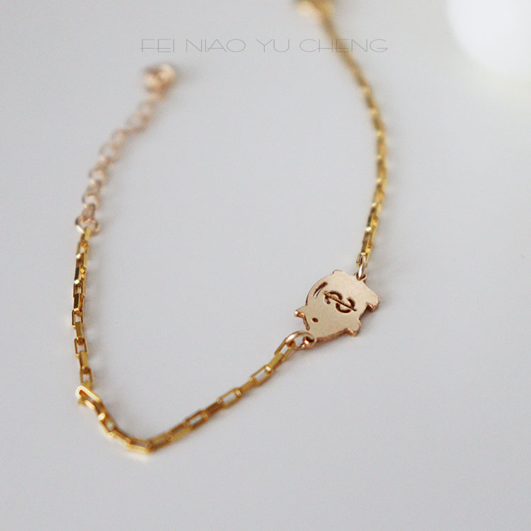 飞鸟屿城原创可戴着洗澡生肖猪手链进口14K包金小众简约猪年脚链